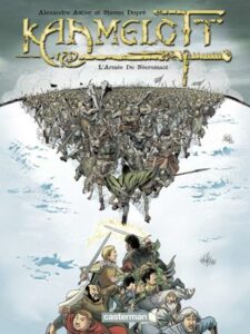 Déclinaison en bande dessinée de la célèbre série télévisée d’Alexandre Astier, Kaamelott en BD paraît en novembre 2006 chez Casterman, avec des dessins du Flamand Steven Dupré. On y retrouve le roi Arthur et ses chevaliers de la Table ronde dans des aventures inédites, parallèles au Livre I de la série TV. Chaque tome forme un récit complet, du combat contre l’Armée du Nécromant à la traversée de l’Antre du Basilic, et la série compte désormais dix volumes.