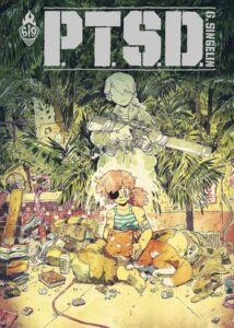 Jun, ancienne tireuse d’élite revenue borgne d’une guerre sans nom, survit dans les rues d’une mégapole asiatique fictive. Brisée par le syndrome de stress post-traumatique, elle se réfugie dans les médicaments tandis que des gangs exploitent les vétérans abandonnés par l’État. Avec PTSD, Guillaume Singelin livre un récit à la fois brutal et profondément humain, porté par un découpage nerveux et des scènes d’action d’une fluidité remarquable.