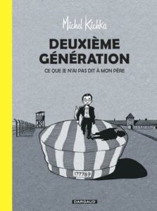 Là où Maus donne la parole au père rescapé, Deuxième génération renverse la perspective : c’est le fils qui parle, et ce qu’il raconte n’est pas l’enfer des camps, mais ce que ça fait de grandir avec un père qui en est revenu. Le petit « Mitchi » grandit en Belgique dans les années 1960, entre un père qui peut roter à table parce qu’« à Auschwitz, c’était bien pire » et des photos de famille contemplées en cachette, les larmes vite essuyées au bruit des pas paternels. Le sujet était tabou et omniprésent à la fois — une situation suffocante que connaissent bien les enfants de survivants.