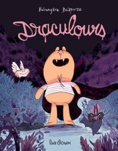 Publié aux éditions La Doux, cet album de 112 pages entièrement signé Bérengère Delaporte — au scénario, au dessin et à la couleur — mêle road movie, quête d’identité et humour décalé. Comme Mortelle Adèle, Draculours joue avec les codes du macabre sans jamais verser dans l’effroi.