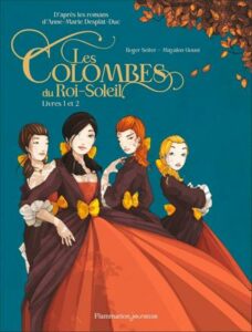Adaptation en BD de la série de romans historiques à succès d’Anne-Marie Desplat-Duc (Flammarion, 16 tomes publiés entre 2005 et 2023, 500 000 exemplaires vendus), Les Colombes du Roi-Soleil se déroule sous le règne de Louis XIV. Le cadre : la Maison royale de Saint-Louis, un pensionnat fondé à Saint-Cyr (près de Versailles) par Madame de Maintenon — la dernière épouse du roi — pour éduquer les filles de la noblesse appauvrie par les guerres. Quatre jeunes pensionnaires occupent le devant de la scène : Charlotte, impulsive et frondeuse ; Louise, réservée et talentueuse chanteuse (qui cache un lourd secret de naissance) ; Hortense, pieuse et discrète ; et Isabeau, passionnée de sciences. Chaque tome les accompagne au moment où l’une d’elles quitte Saint-Cyr pour affronter le monde extérieur — la cour de Versailles, l’Angleterre, les routes de l’exil protestant, voire le Nouveau Monde.