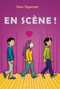 Déjà connue pour Souriez ! et Sœurs, Raina Telgemeier signe ici son premier récit de fiction. Le montage du spectacle scolaire sert de toile de fond à des enjeux typiquement adolescents : premiers émois amoureux, quête d’identité, acceptation de la différence. L’un des jumeaux, Justin, est ouvertement homosexuel ; l’autre, Jesse, se cherche encore. Le sujet est abordé sans lourdeur ni mise en scène dramatique, comme un élément naturel de la vie du groupe. Le récit est découpé en actes — clin d’œil à la forme théâtrale — et le graphisme, coloré et lisible, fera le bonheur des jeunes lecteur·ices qui aiment le théâtre ou que l’idée d’y mettre les pieds intimide encore un peu.