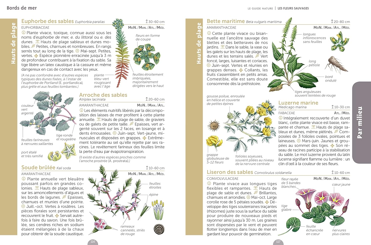 Avec une description précise pour bien identifier chaque fleur ; Des indications sur là où elle pousse ; Le calendrier de floraison ; Des anecdotes ou particularités ; Une grande photo légendée de la fleur dans son milieu ; Un dessin extrait de « La grande flore » de Gaston Bonnier pour bien voir les détails.
