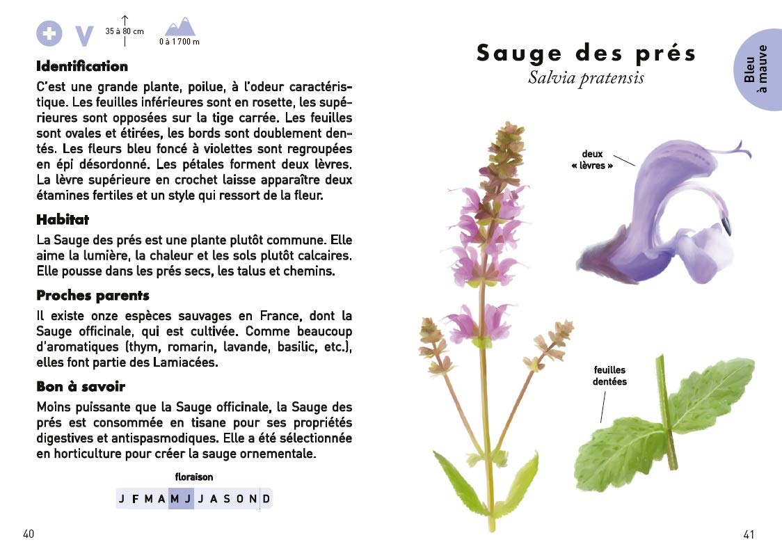 Chaque fiche est illustrée avec un dessin très précis de la fleur, de sa tige et de ses feuilles pour la reconnaître en un clin d’œil. D’un tout petit format, ce livre tient dans une poche pour être le compagnon idéal de toutes vos excursions.
