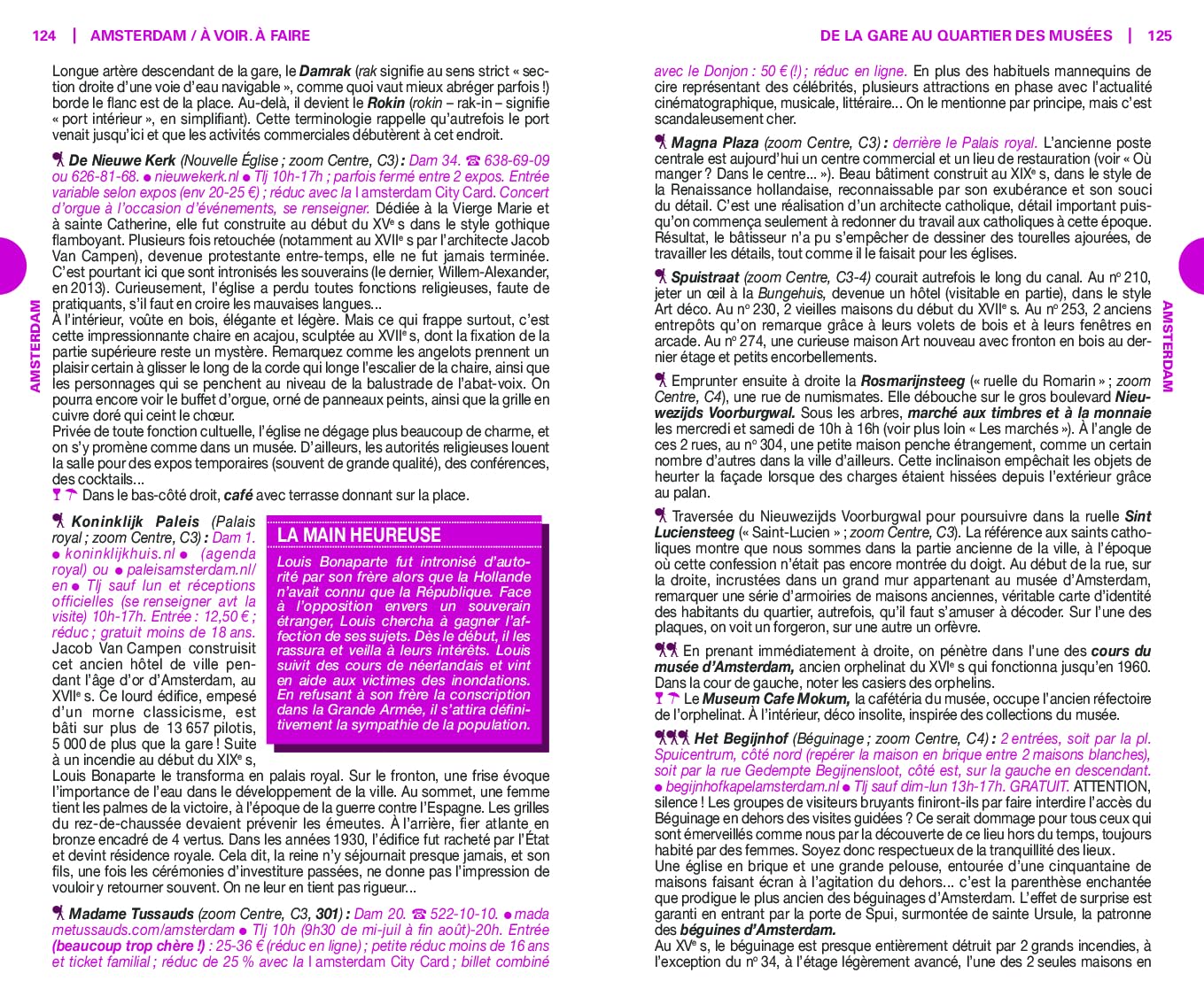 Un plan détachable rassemble toutes les adresses incontournables. Et pour les plus aventureux, le guide vous dévoile les endroits méconnus d’Amsterdam, loin de l’afflux touristique.