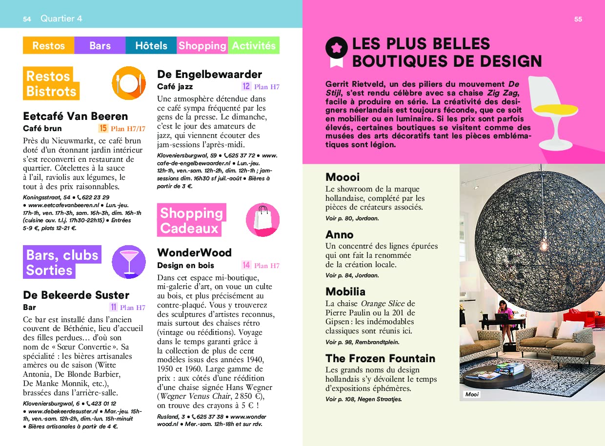 Le guide propose aussi une sélection de restaurants, de cafés et de boutiques pour vous immerger totalement dans l’ambiance d’Amsterdam. Un plan détachable avec toutes les adresses est inclus pour faciliter votre visite.