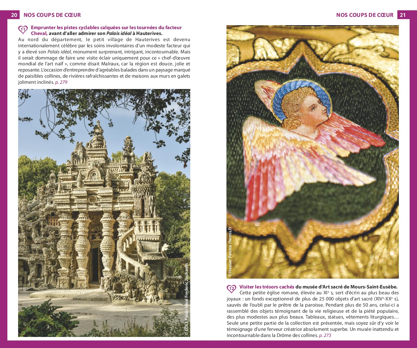- Mais aussi des encadrés sur des sites moins connus pour sortir des sentiers battus : les ruines d’anciens châteaux en Ardèche, les villages perchés de la Drôme provençale, les vallées perdues.