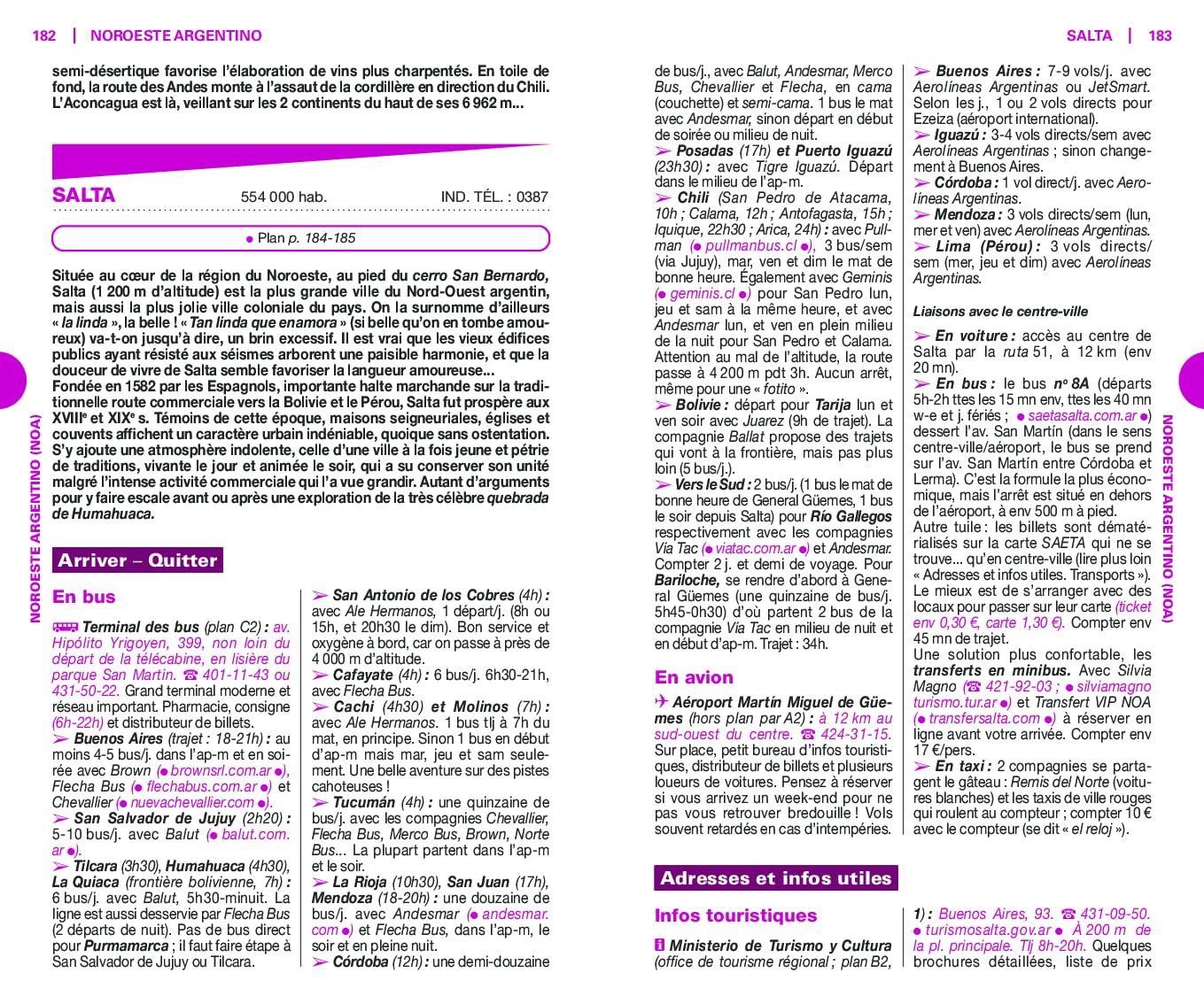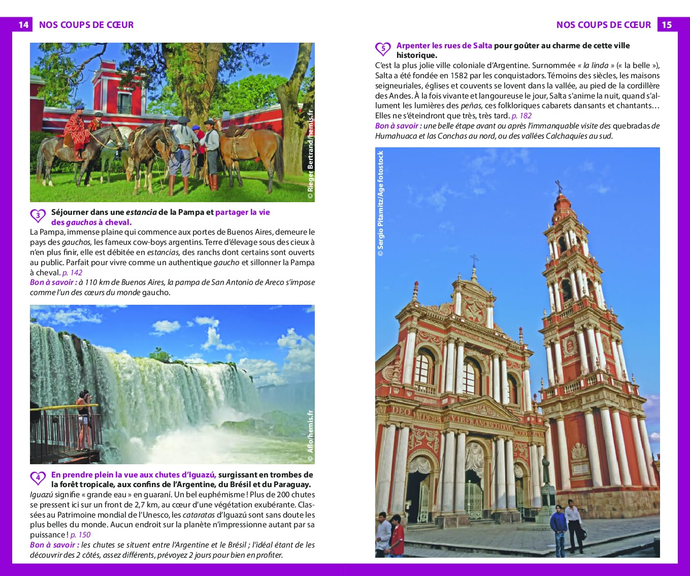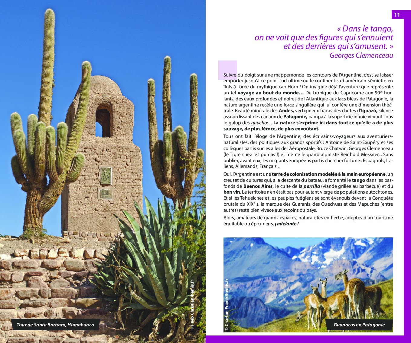 Les auteurs suggèrent des itinéraires variés, selon vos centres d’intérêt et votre localisation. Vous y retrouverez aussi des suggestions d’activités originales, comme passer une soirée envoûtée par le tango dans une milonga de Buenos Aires, assister à un match de football au stade de Boca Juniors ou contempler la géologie impressionnante des quebradas.