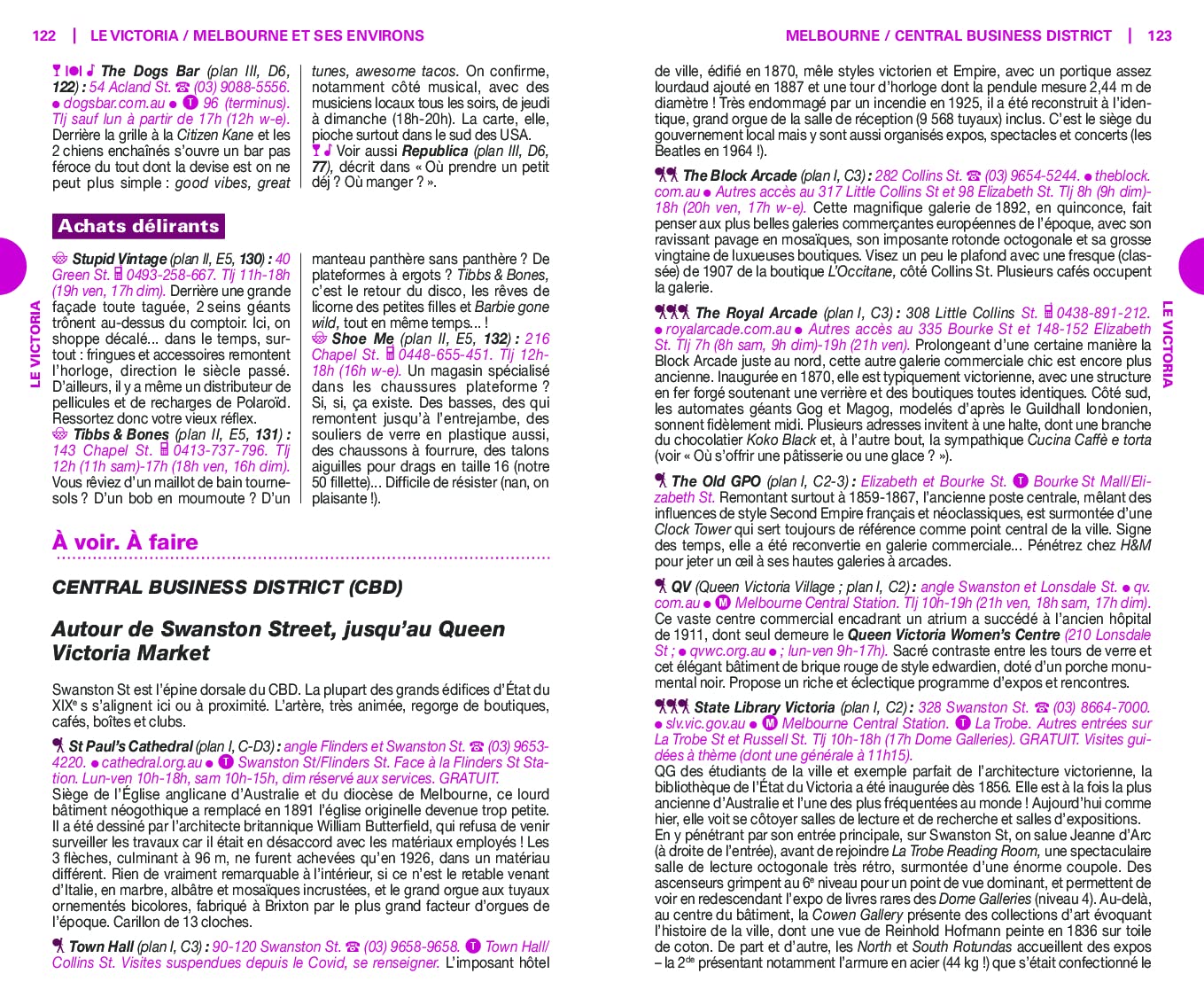 Un guide qui nous révèle les merveilles du pays des kangourous. Les auteurs y présentent une sélection de leurs coups de cœur, de la vie nocturne de Melbourne à l’opéra de Sydney, en passant par la Great Ocean Road, les plages de surfeurs de la côte Est, le Red Centre et les nombreux parcs nationaux.