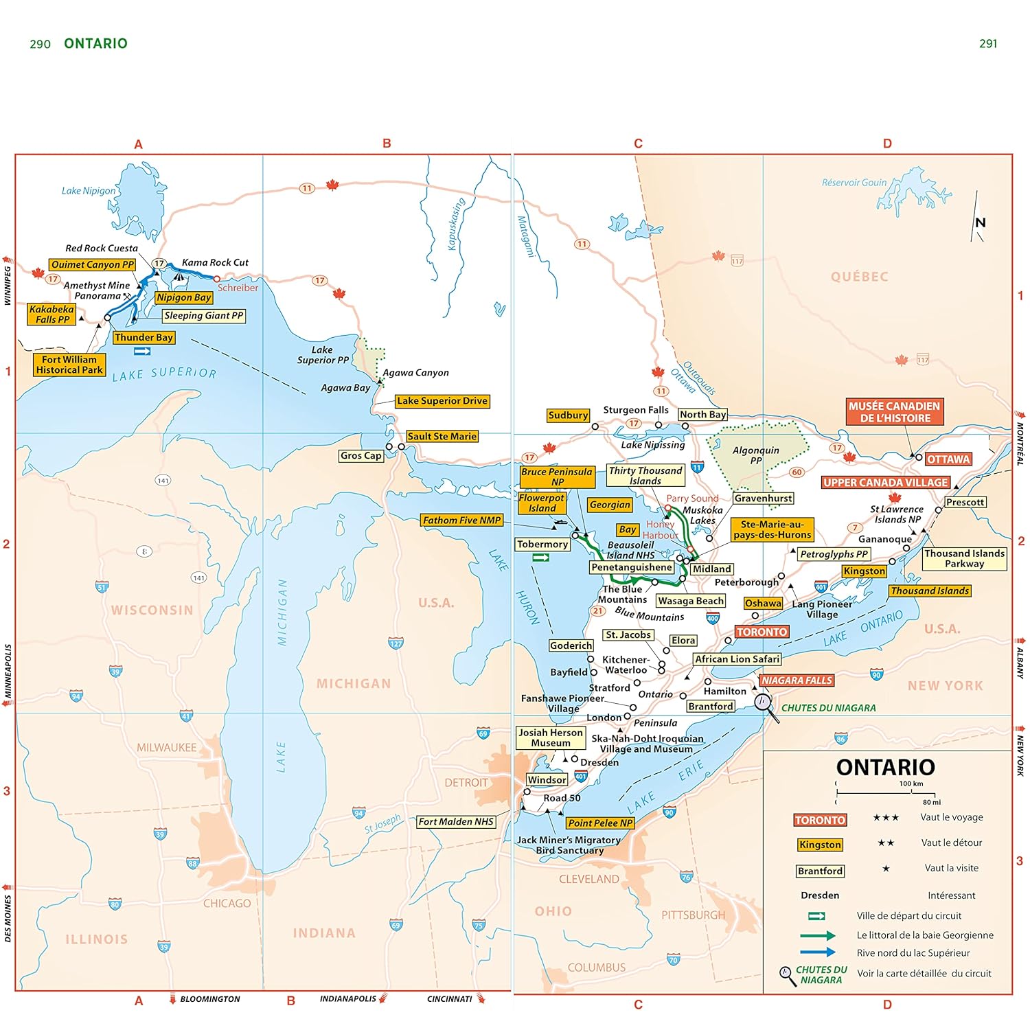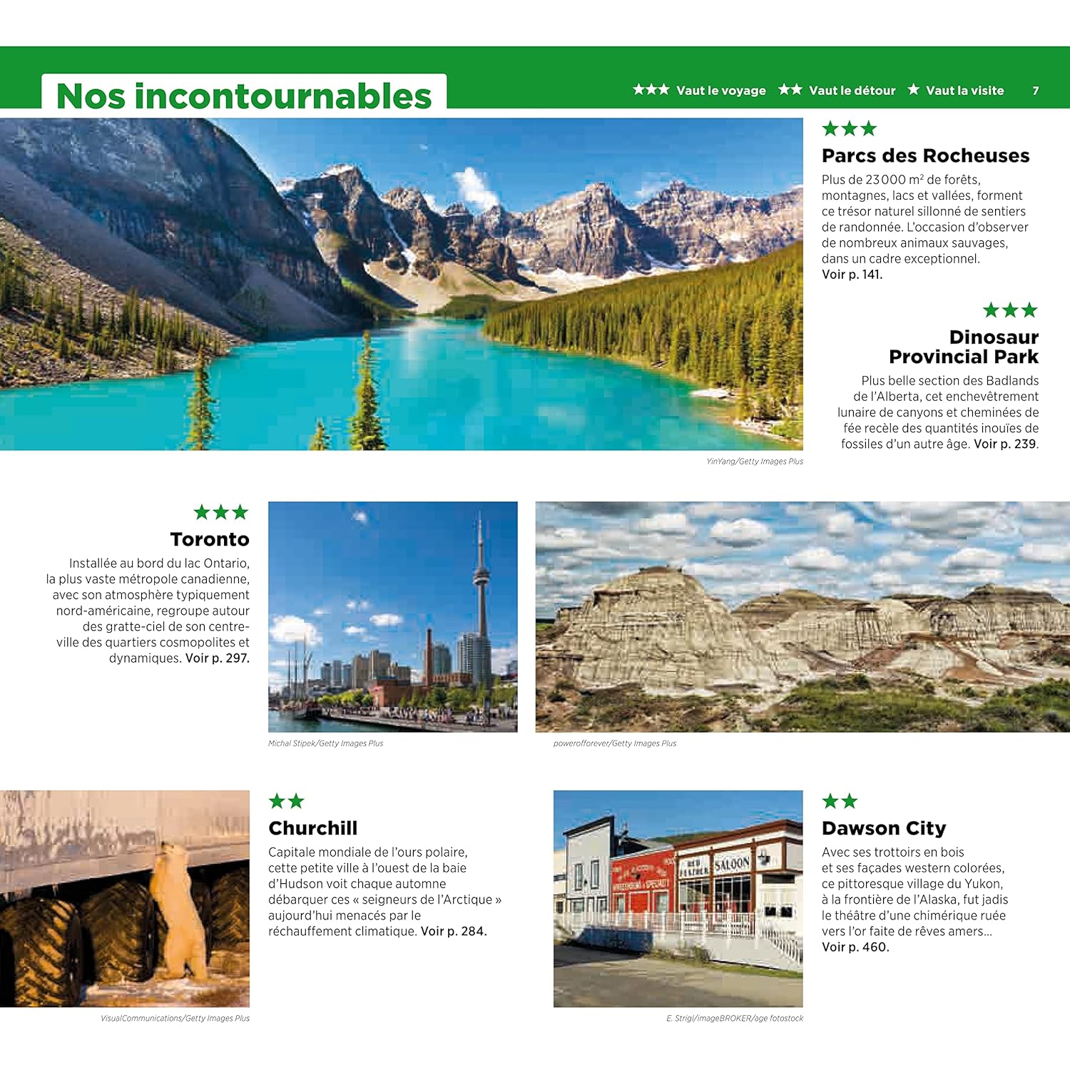 Les principales attractions des métropoles de la région, comme Toronto, Ottawa, Winnipeg, Calgary ou Vancouver, sont également passées en revue, avec des recommandations pour les musées, les restaurants, les bars et l’hébergement.