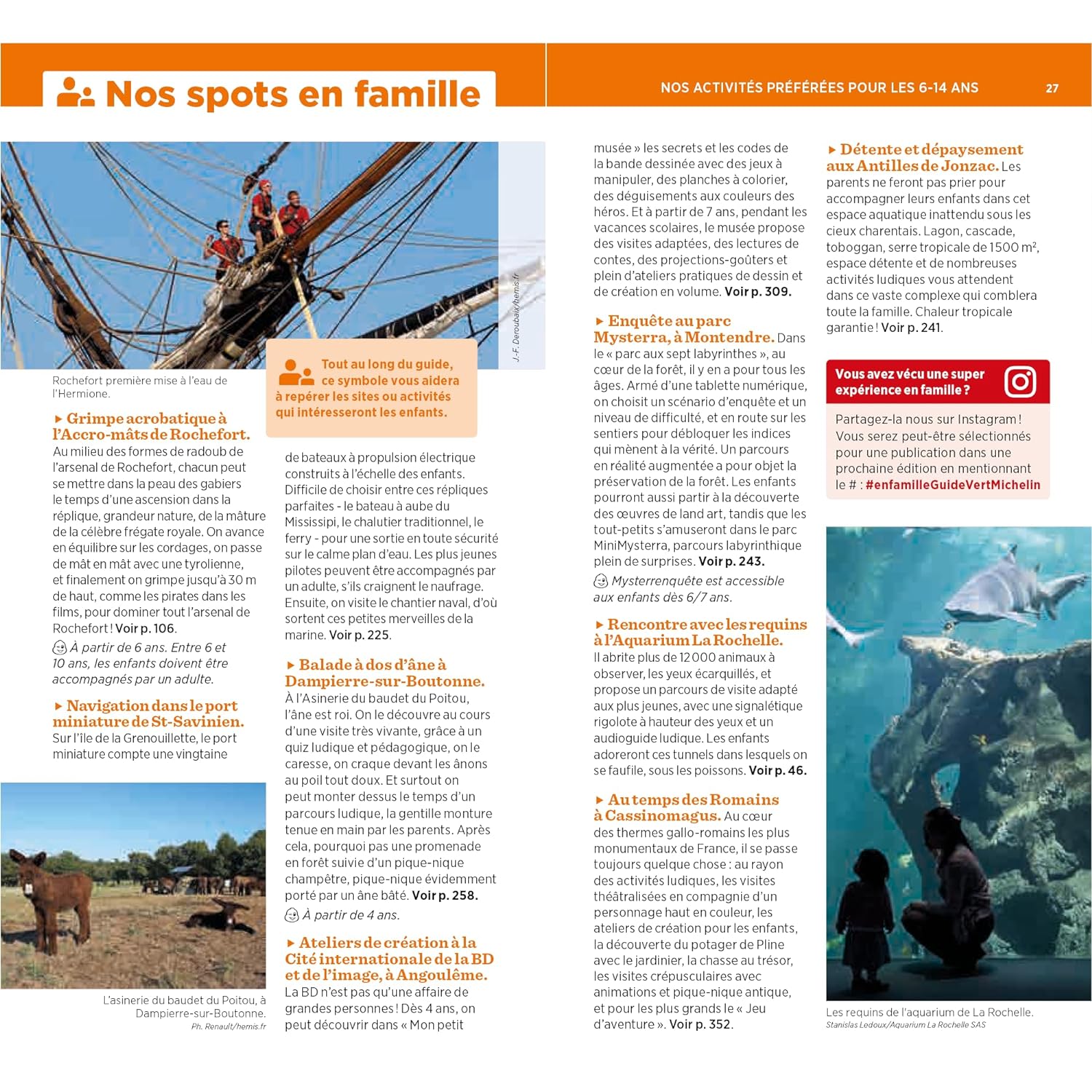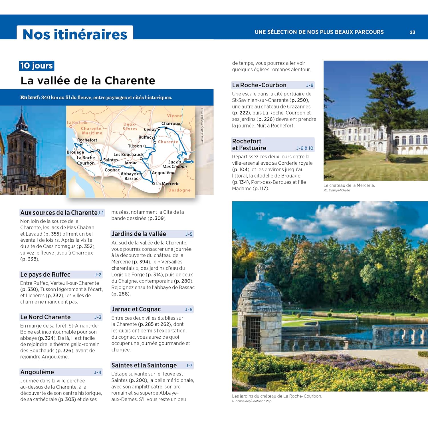 Vous y retrouverez des suggestions d’itinéraires variés, de 3 à 10 jours, ainsi que 110 activités à faire avec des enfants. Les sites touristiques majeurs de la région sont classés par importance (1, 2 ou 3 étoiles) : des églises romanes aux châteaux majestueux, en passant par la vallée de la Charente et ses paysages bucoliques.