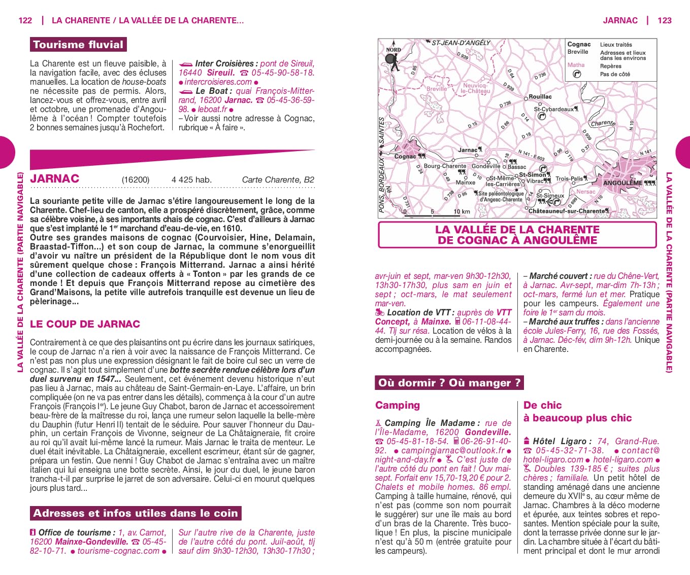 Un guide qui invite à la découverte des richesses des Charentes, des campagnes lumineuses entourant la vallée de la Charente à la côte ensoleillée, avec ses îles et ses carrelets.