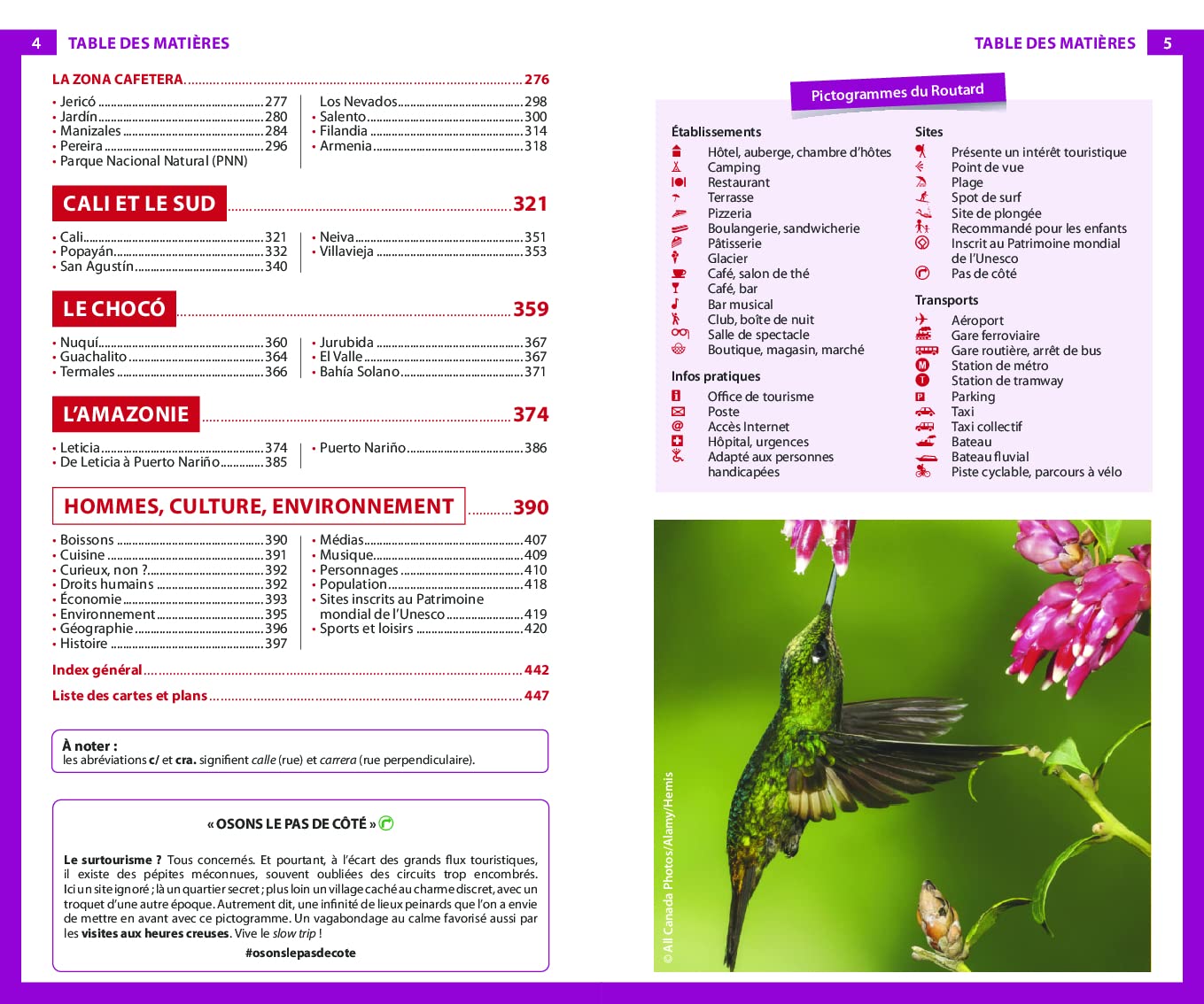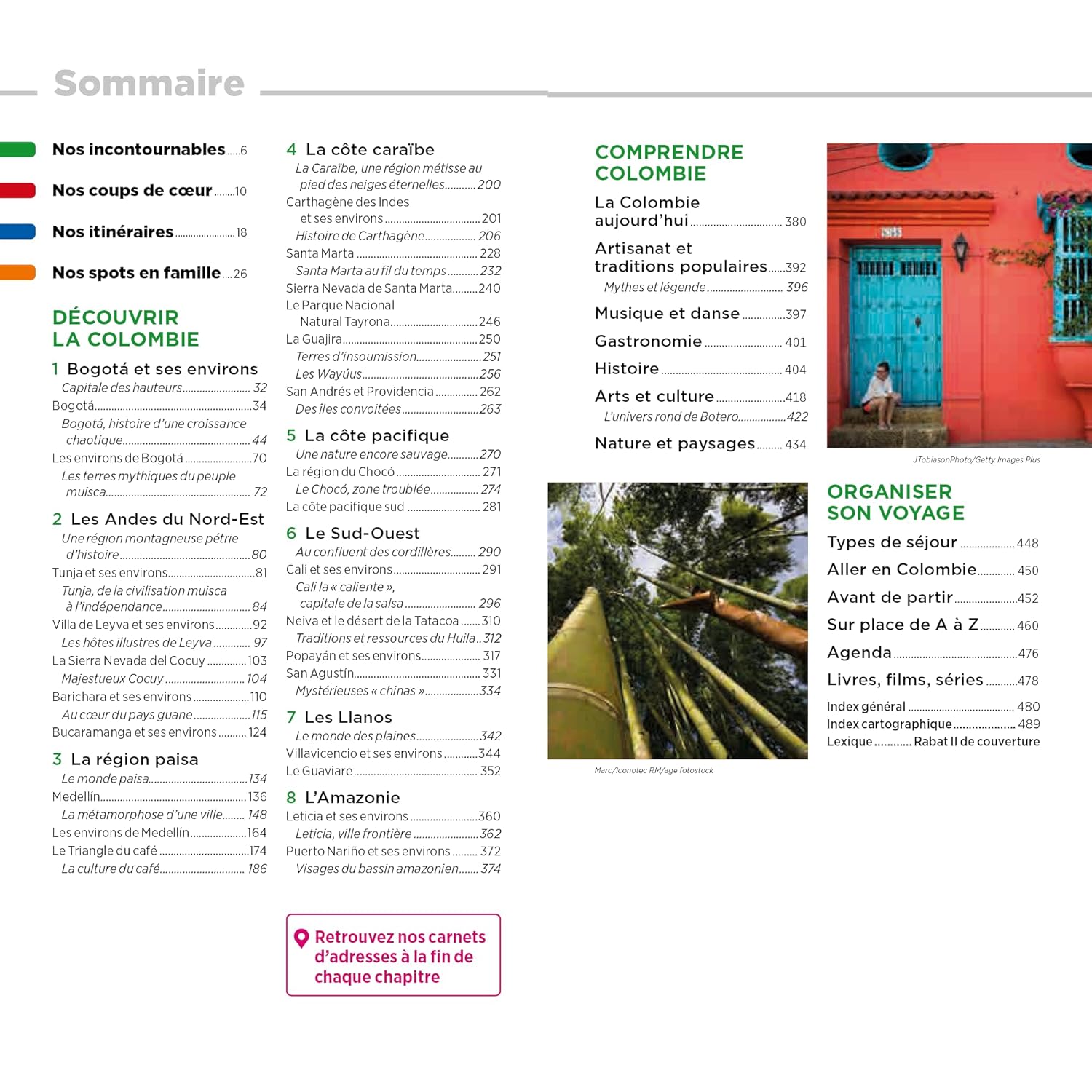 Ce guide est divisé en 8 micro-régions : Bogota et ses environs ; Les Andes du Nord-Est ; La région paisa ; La côte caraïbe ; La côte pacifique ; Le Sud-Ouest ; Les Llanos ; L’Amazonie.