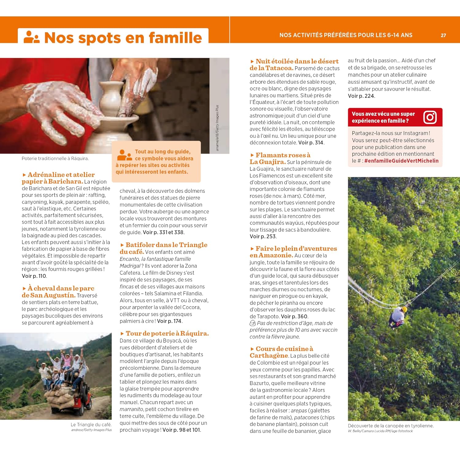 - Les meilleurs spots en famille (activités pour les 6-14 ans) : À cheval dans le parc de San Augustín ; Faire le plein d’aventures en Amazonie ; Cours de cuisine à Carthagène…