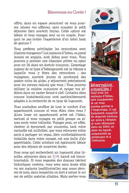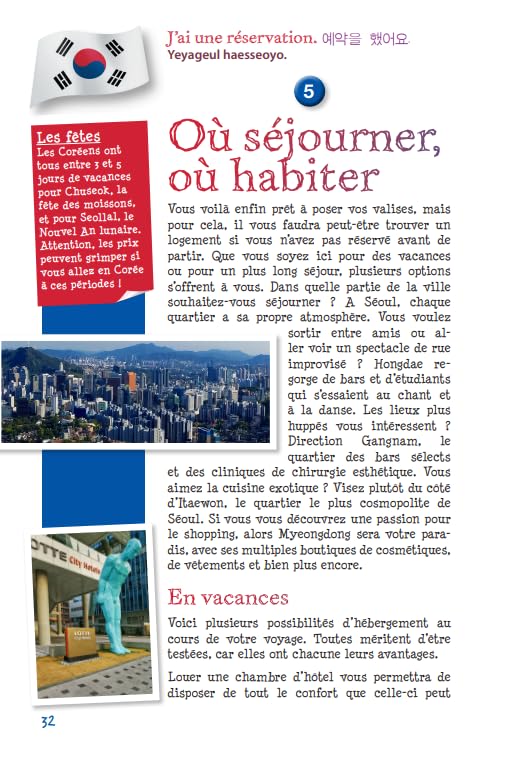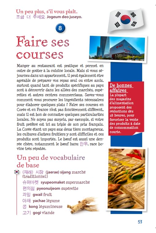 À travers 24 chapitres richement illustrés, vous y retrouverez de précieux renseignements pour vivre à la coréenne, vous déplacer aisément, apprécier les délices dans les restaurants locaux, faire du shopping ou encore participer à des activités sportives.