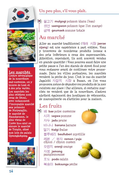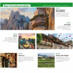 Y sont aussi proposées des activités sportives pour petits et grands comme la randonnée, l’escalade, le golf ou la plongée, et même le ski et le snowboard. Sans oublier des pages consacrées à la gastronomie locale pour découvrir les us et coutumes à table, les secrets du kimchi et d’autres spécialités.