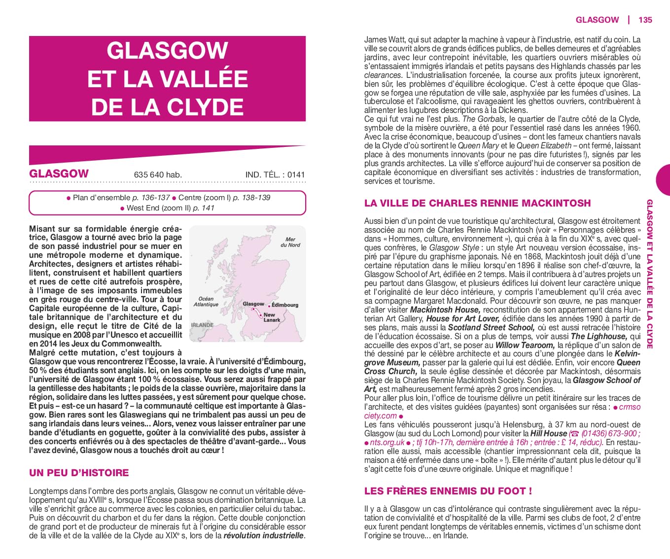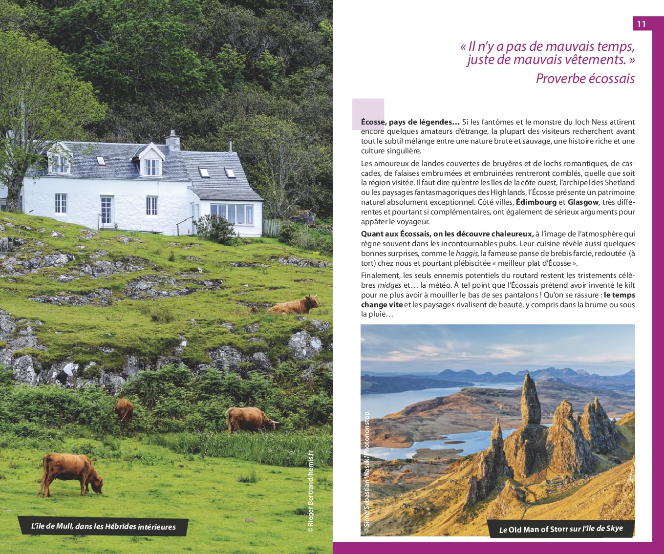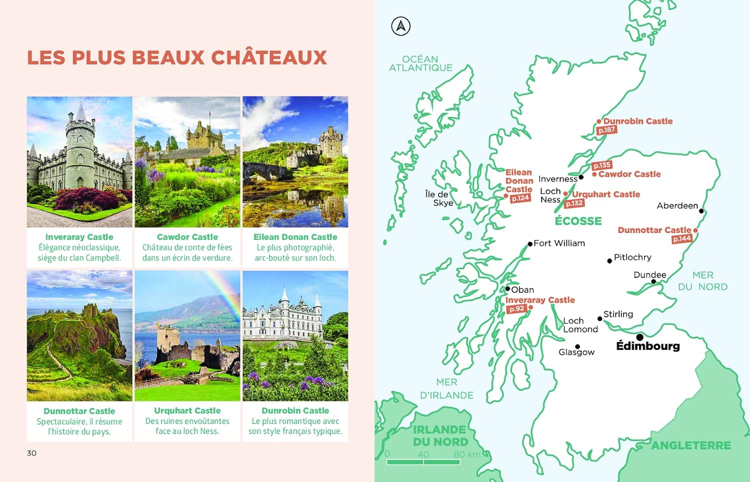 En outre, des chapitres thématiques mettent en exergue les nombreux châteaux ou encore les distilleries de whisky. Le tout illustré par près de 200 photos et 40 cartes et plans.