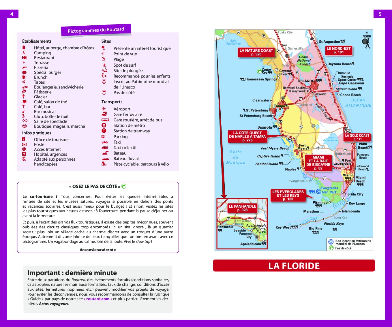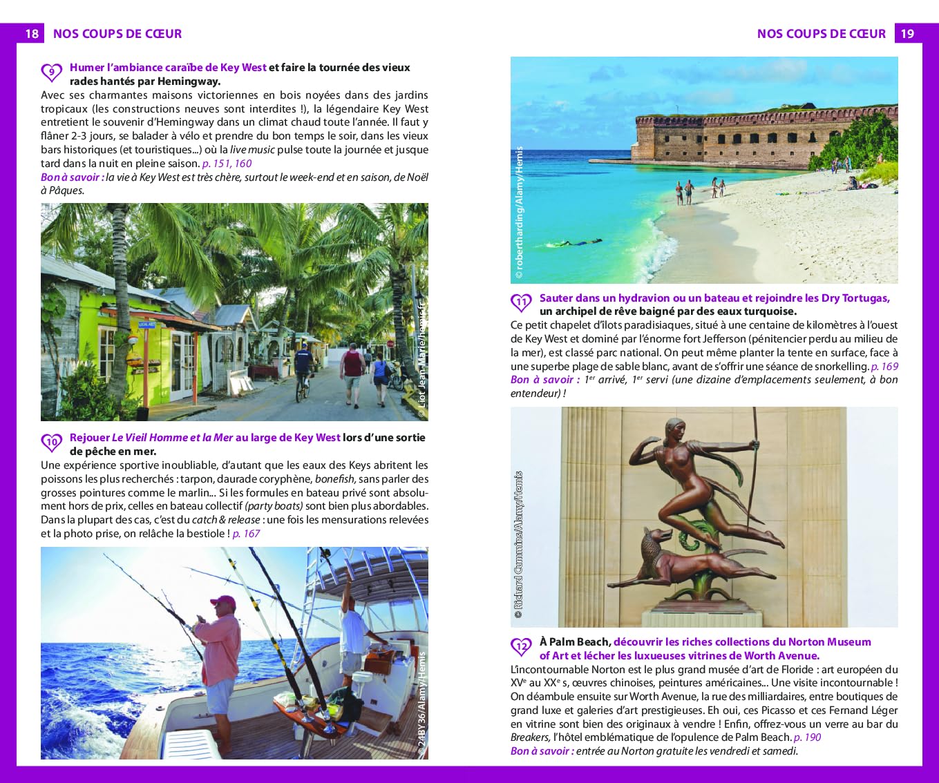 On y découvre les sites emblématiques comme Orlando, Miami, les Everglades, l’archipel des Keys avec Key West, Tampa Bay, Fort Lauderdale, sans oublier les plages du nord de la Floride.