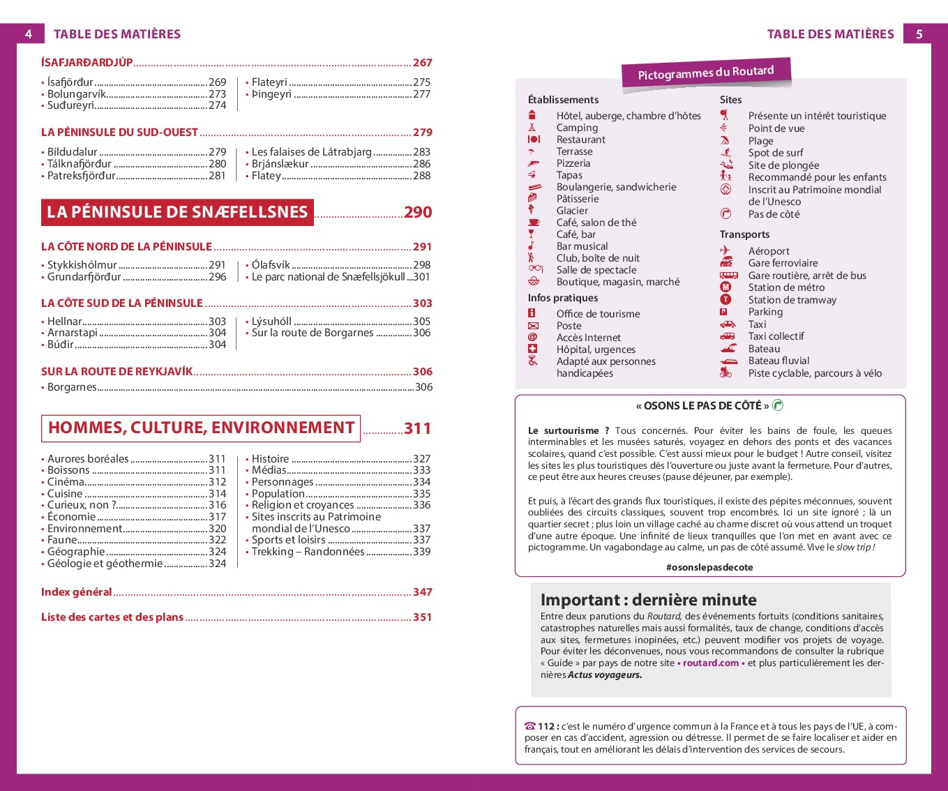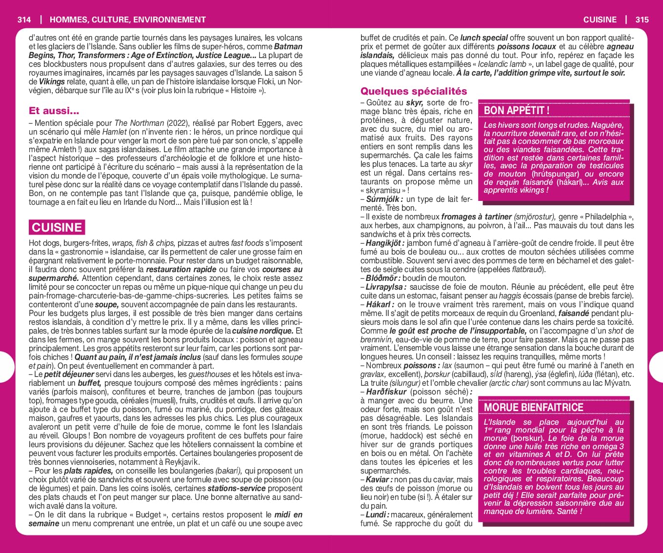 - Des pages introductives thématiques pour aborder le pays sous tous les angles : histoire et sagas, sources d’eau chaude, gastronomie, volcans et glaciers, sites perdus…