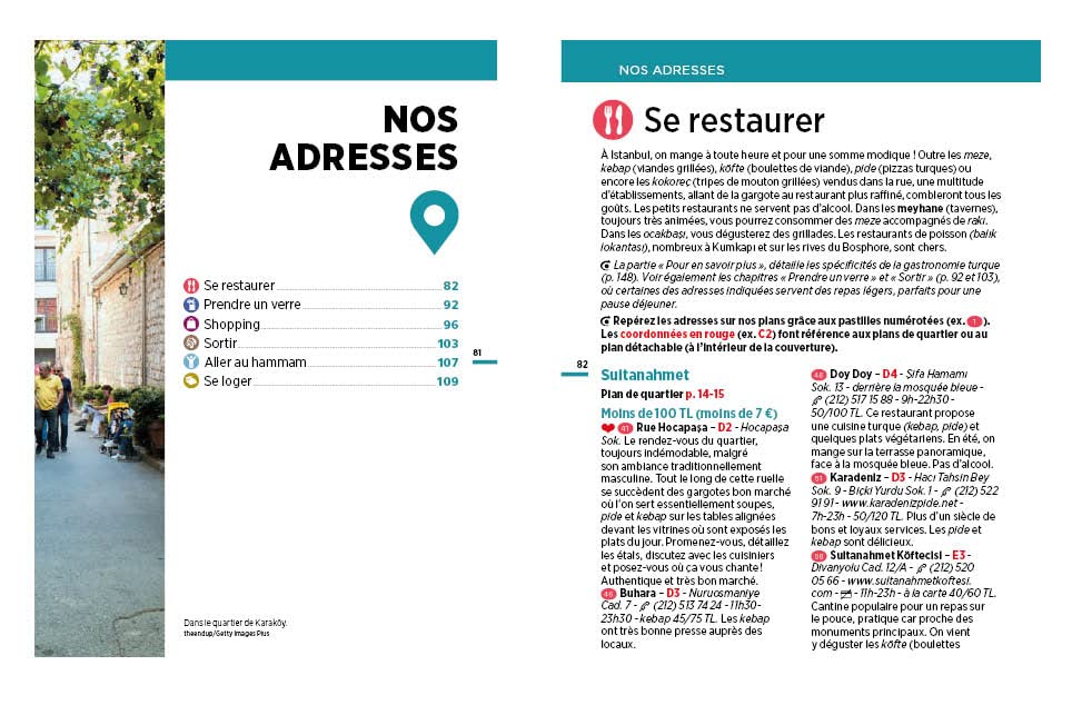 Un concept unique : des cartes grand format dépliables par quartier. Les incontournables, visites, restos et sorties localisés sur les cartes. Des idées et des balades pour découvrir la ville autrement. Tous les bons plans testés par les auteurs pour vivre à l’heure d’Istanbul !