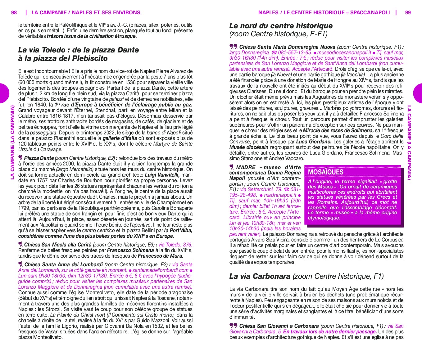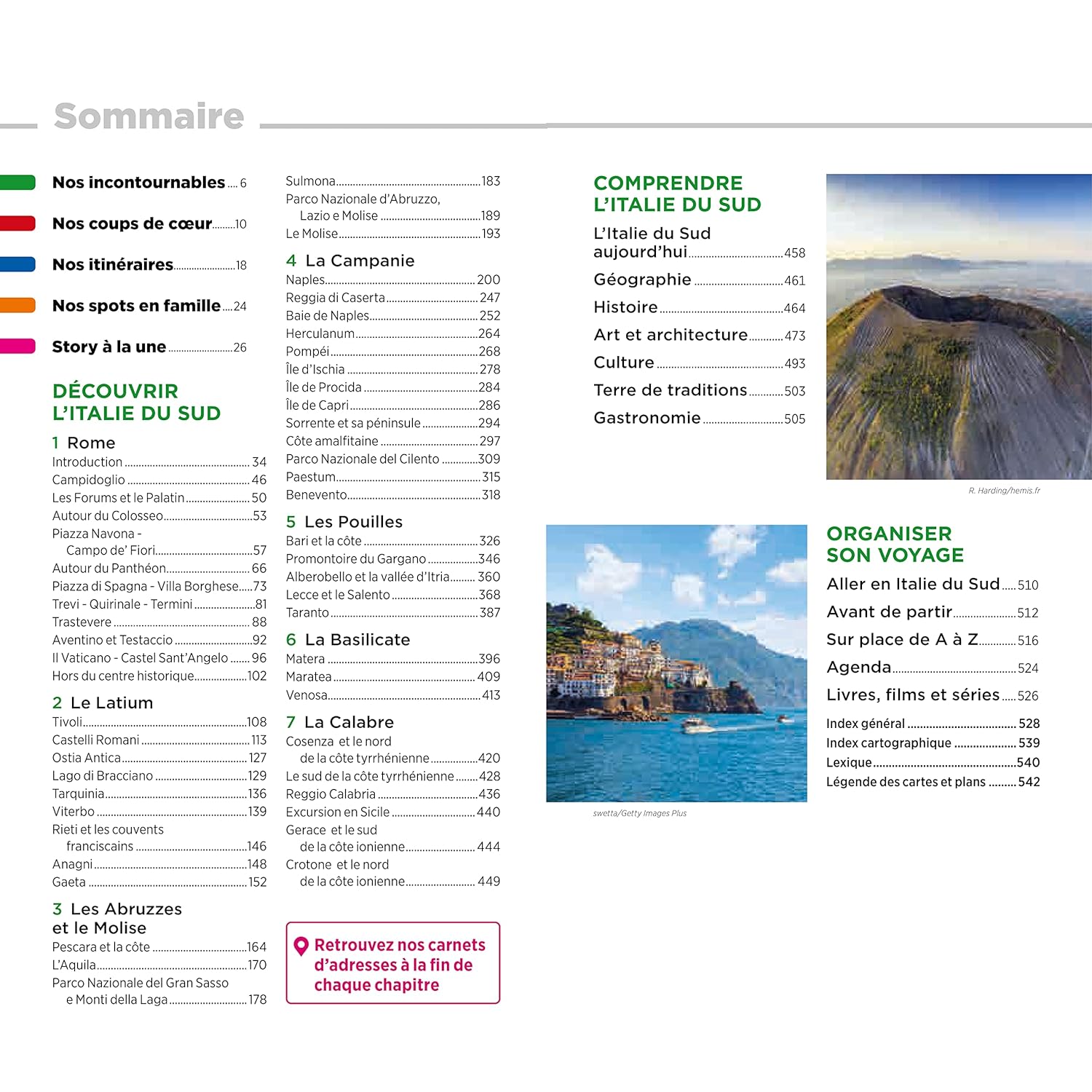 Un guide organisé selon un découpage en sept régions. Il couvre les destinations incontournables comme Rome, Pompéi, Herculanum ou encore l’île de Capri, toutes classées sur une échelle d’intérêt de 1 à 3 étoiles.