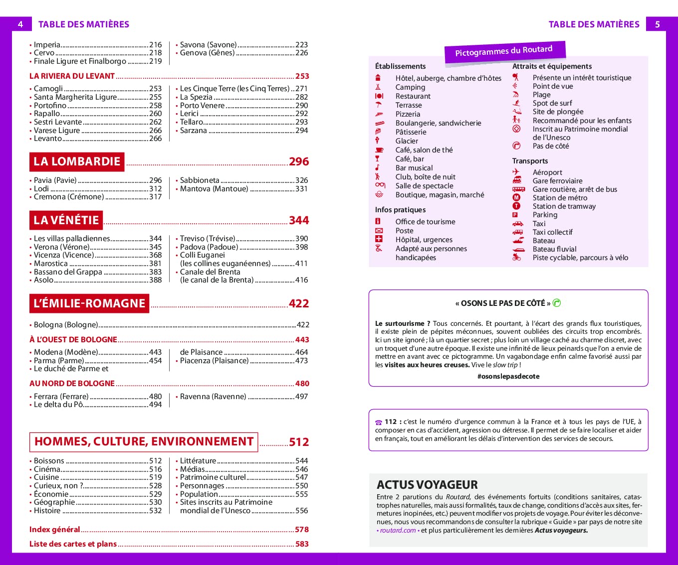 Un guide qui nous transporte à travers des paysages variés et enchanteurs, de la mer Ligure et de l’Adriatique jusqu’aux sommets des Alpes. Les principales attractions de la région sont évaluées de 1 à 3 étoiles, parmi lesquelles les villes historiques de Gênes, Bergame ou Bologne.