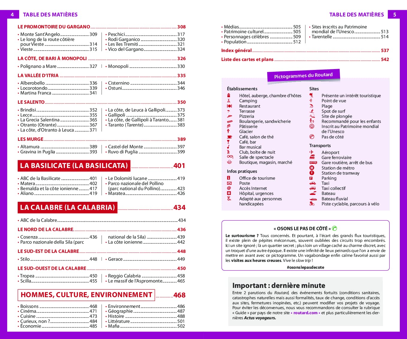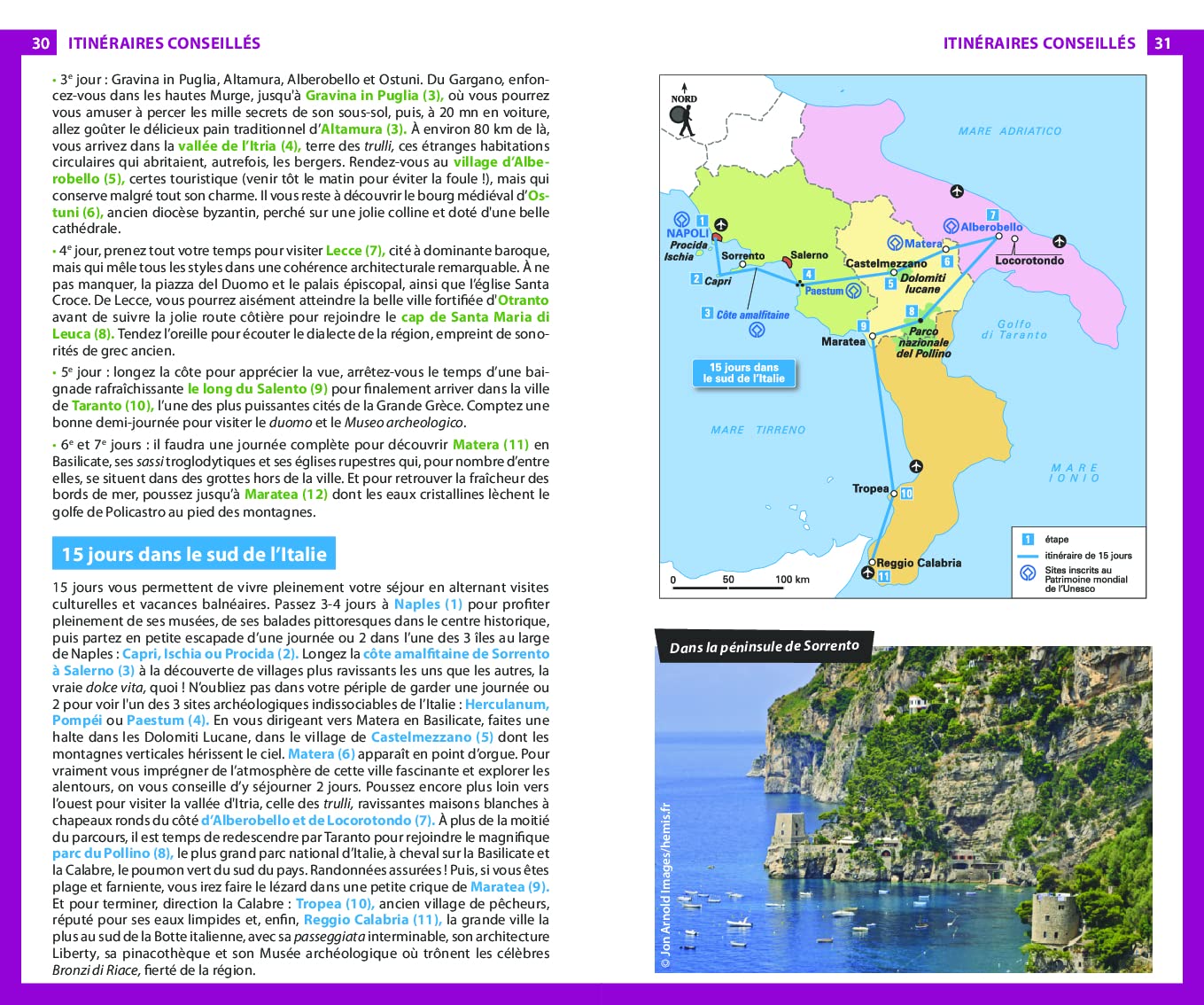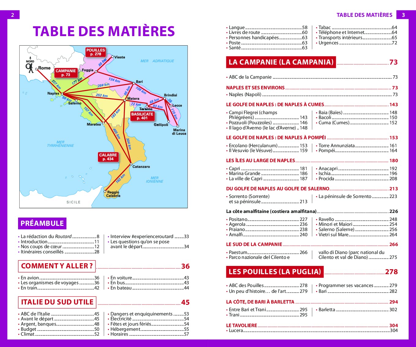 Des propositions d’itinéraires régionaux et d’activités de plein air pour tous les budgets et toutes les saisons sont également proposées, ainsi qu’un chapitre consacré à la succulente cuisine du sud de l’Italie.
