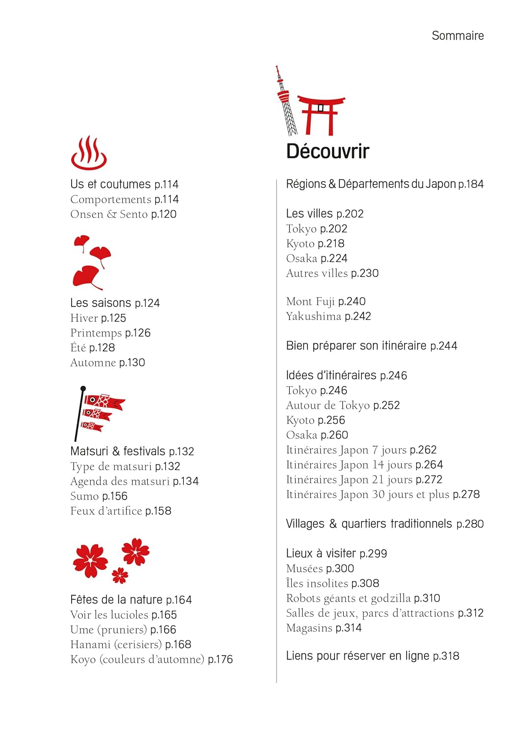 Les auteurs y présentent les sites emblématiques comme Tokyo, Osaka, le mont Fuji, Kyoto ou Nara, avec une multitude d’activités originales, de promenades hors des sentiers battus et de visites inoubliables.