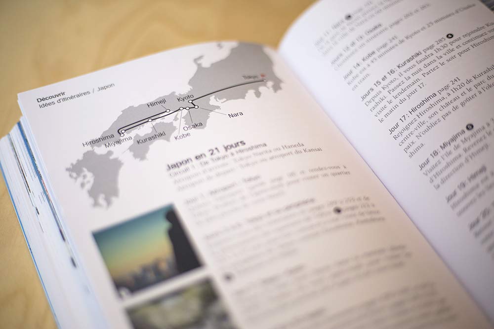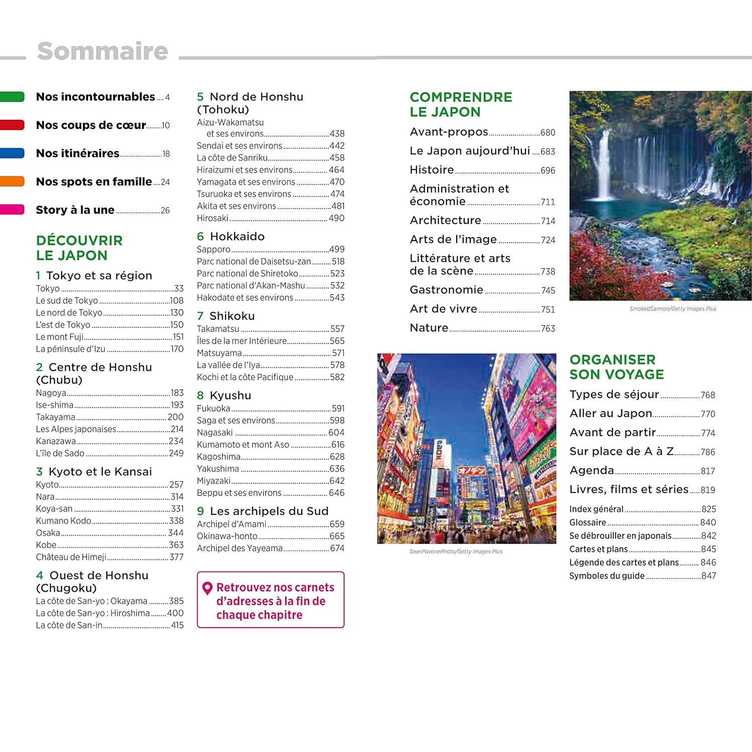 Un guide qui propose une découpe du pays du Soleil levant en neuf régions, dont Tokyo, Kyoto et le Kansai, Shikoku et les archipels du Sud. On y retrouve les lieux emblématiques comme le mont Fuji et la baie de Kabira, qui sont soigneusement classés selon leur importance.