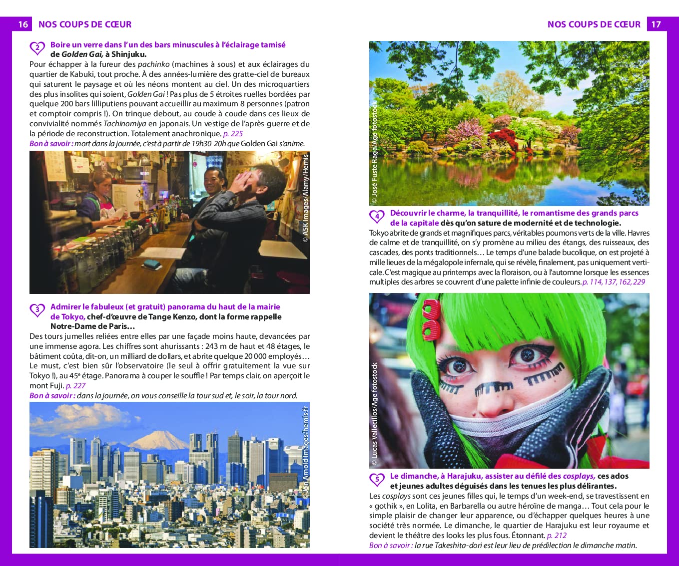 Sans oublier de bonnes adresses pour manger, faire du shopping, sortir ou se loger, quel que soit votre budget. Mais aussi des suggestions de parcours, comme la route du Tokaido en 14 jours, ainsi que des cartes et des plans pour repérer facilement les principales attractions.