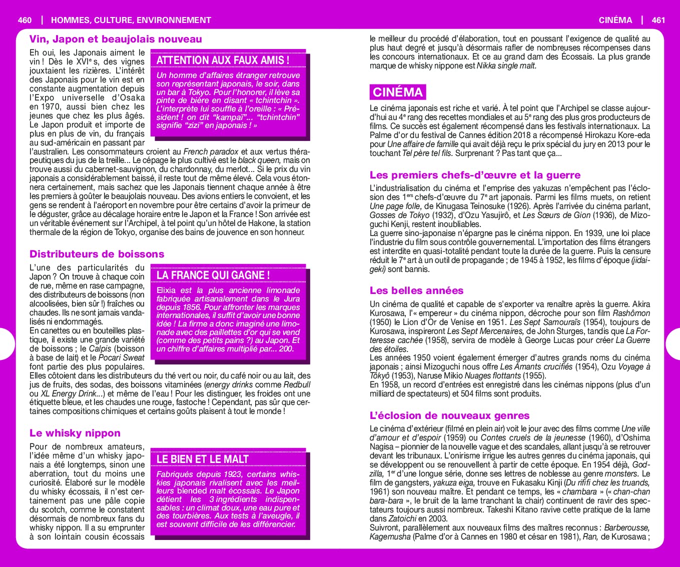 Ce guide fournit également de précieux renseignements sur l’hébergement et les transports. Qui plus est, il contient un agenda des centaines de fêtes traditionnelles qui rythment la vie japonaise. Sans oublier des chapitres qui passent en revue les us et coutumes locaux, le folklore et la gastronomie exquise.