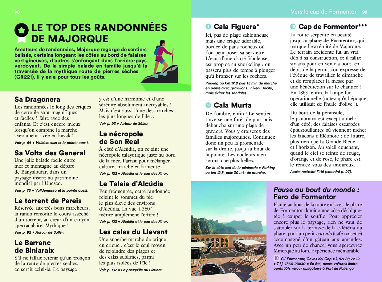 Un guide qui fournit tous les renseignements pratiques pour réussir son séjour dans les Baléares. Les auteurs y présentent les endroits à ne pas manquer comme les criques du Drach, la Serra de Tramuntana ou encore le Cap de Favàritx, notés sur une échelle de 1 à 3 étoiles.