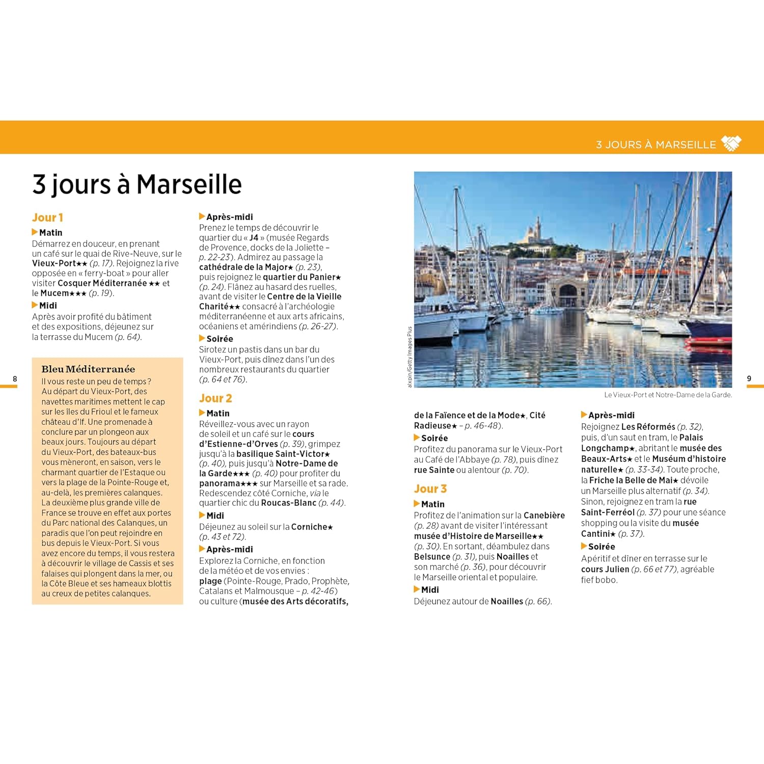 De nombreuses activités sont suggérées, de la visite du fameux Mucem aux randonnées pittoresques dans les calanques, en passant par une balade dans le charmant quartier du Panier, sur les traces de Marcel Pagnol