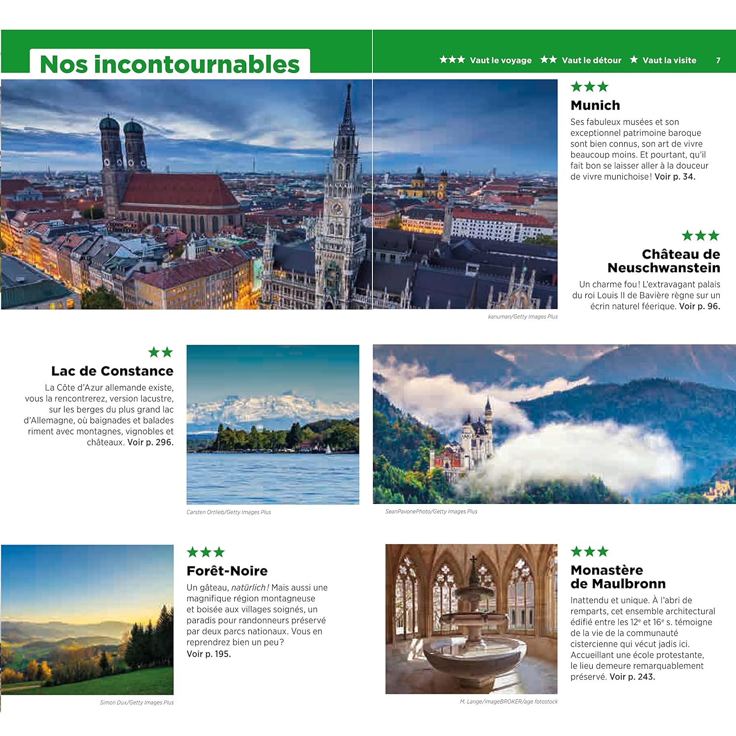 Y figurent des recommandations pour visiter Munich et ses Bierpalast, le château féérique de Neuschwanstein, la Route romantique ou encore la ville thermale de Baden-Baden. Les auteurs y présentent même la ville de Salzbourg et le Bade-Wurtemberg, un land du sud-ouest de l’Allemagne.