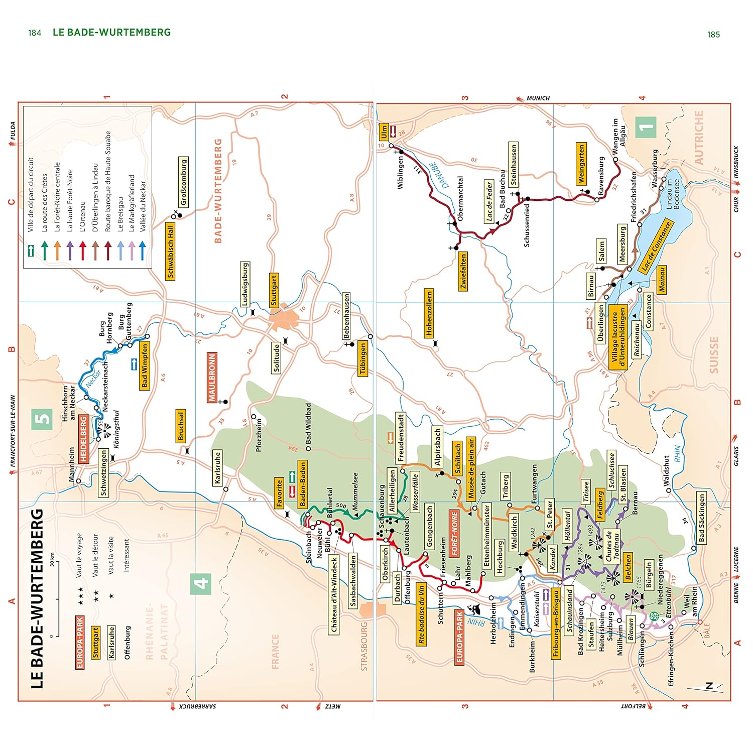 Un guide qui vous invite à explorer l’Allemagne du Sud, avec une attention particulière portée à la région de la Bavière. On y découvre les sites phares comme Munich, la Forêt-Noire ou le lac de Constance, notés de 1 à 3 étoiles selon leur importance.