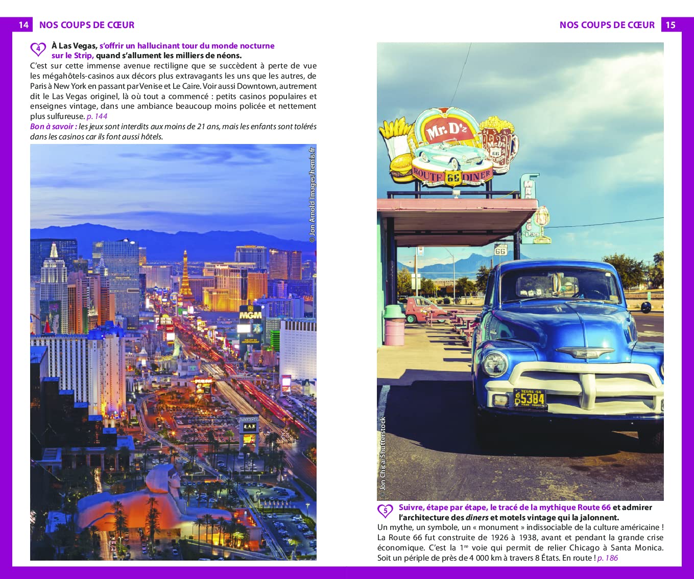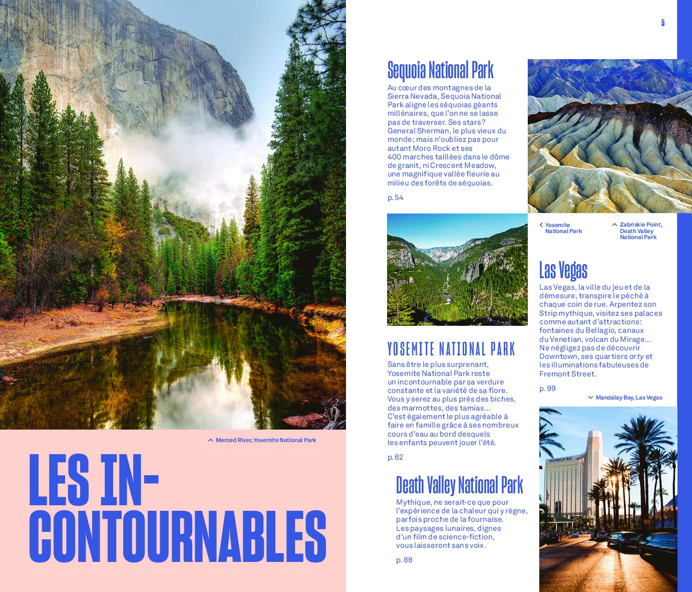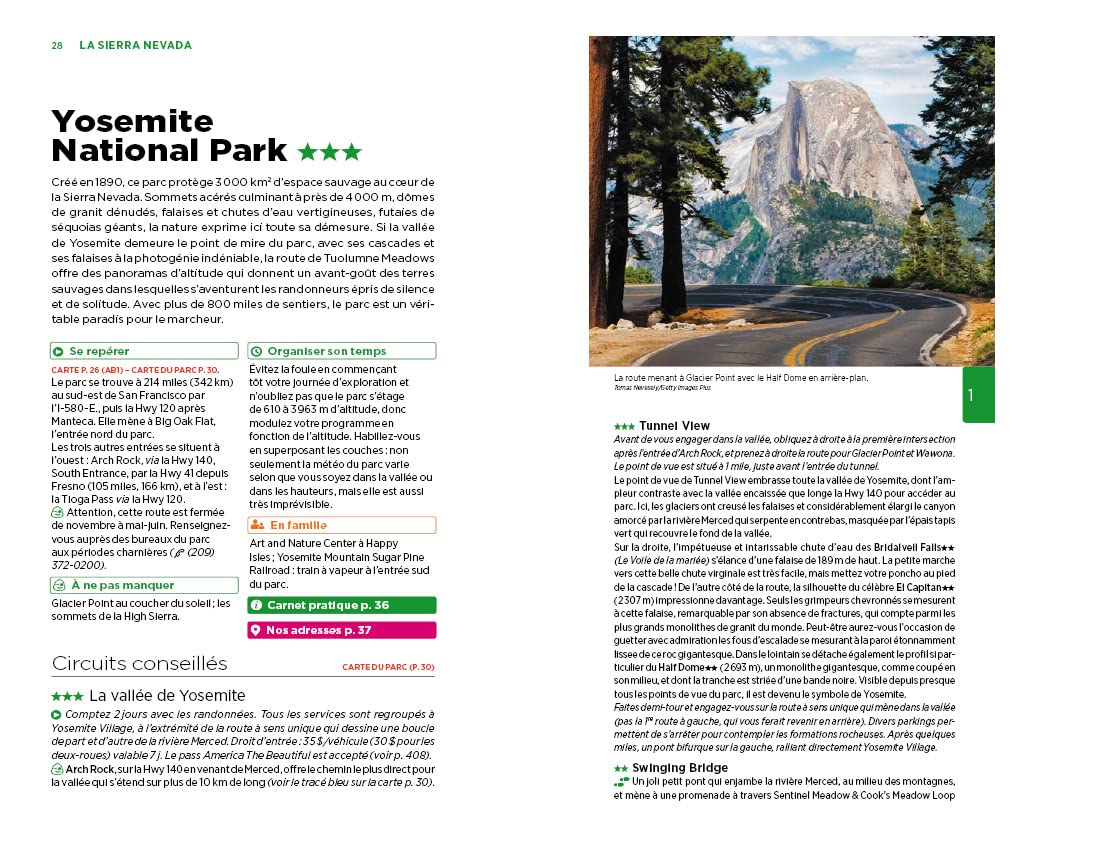 Vous y retrouverez des suggestions d’activités hors du commun, telles que camper à Yosemite, assister au coucher du soleil depuis Glacier Point, se perdre dans l’immensité de la Vallée de la Mort ou se laisser envouter par le show de Las Vegas.