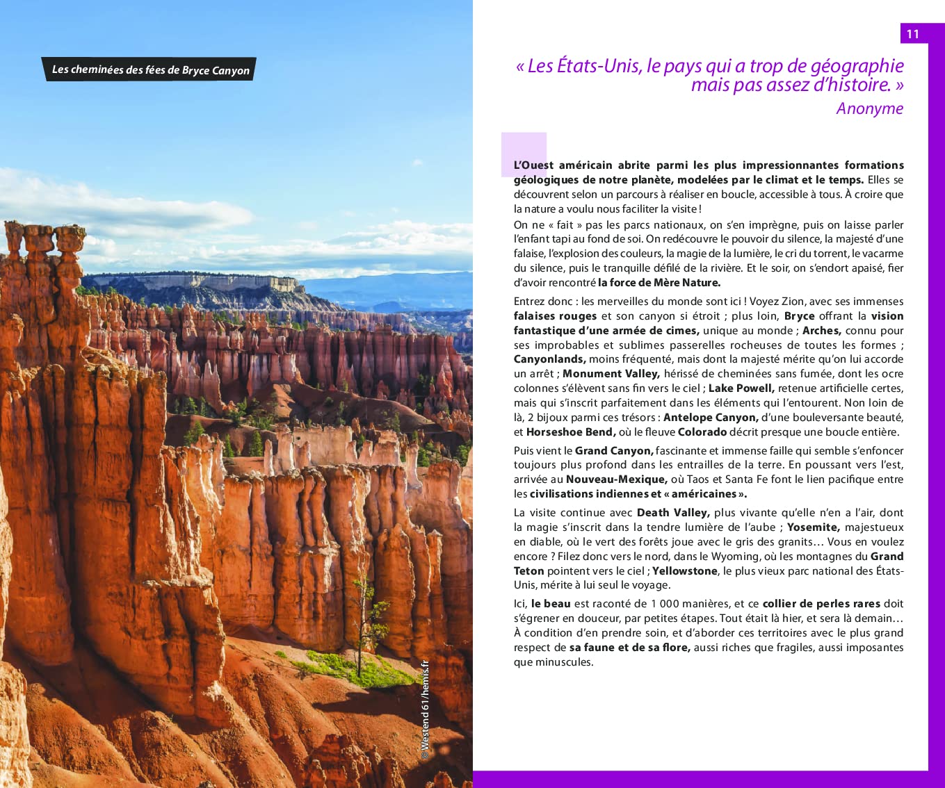Un guide qui vous emmène à travers les paysages majestueux de la Sierra Nevada et ses séquoias géants, les vastes déserts de l’Arizona et de l’Utah, les profondes gorges du plateau du Colorado et les sommets abrupts des Rocheuses.