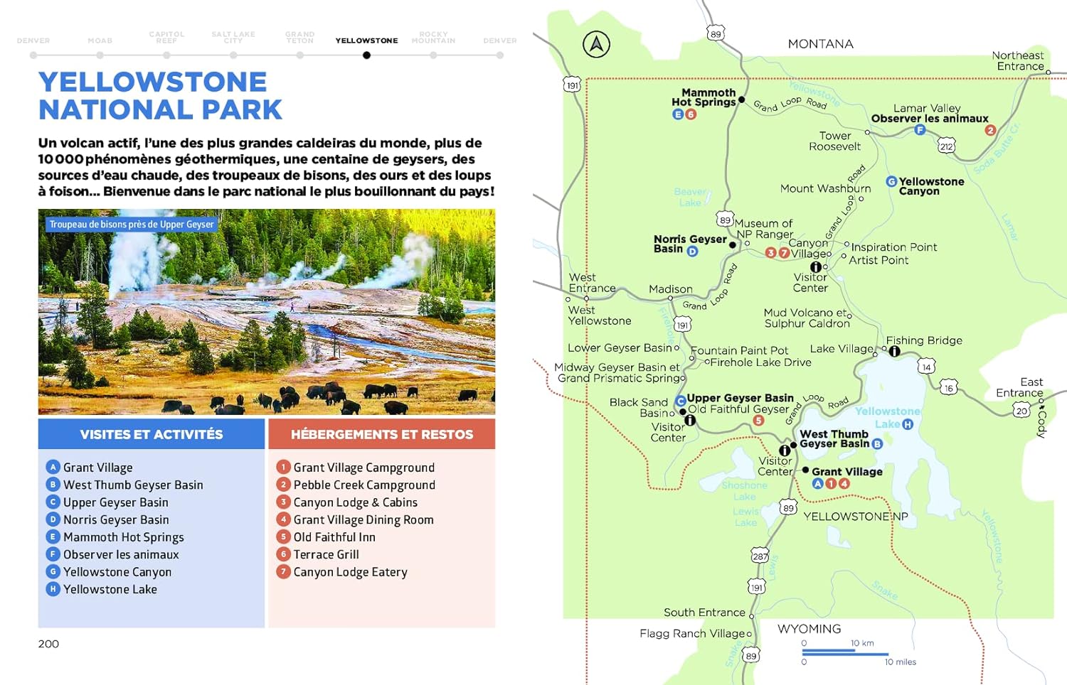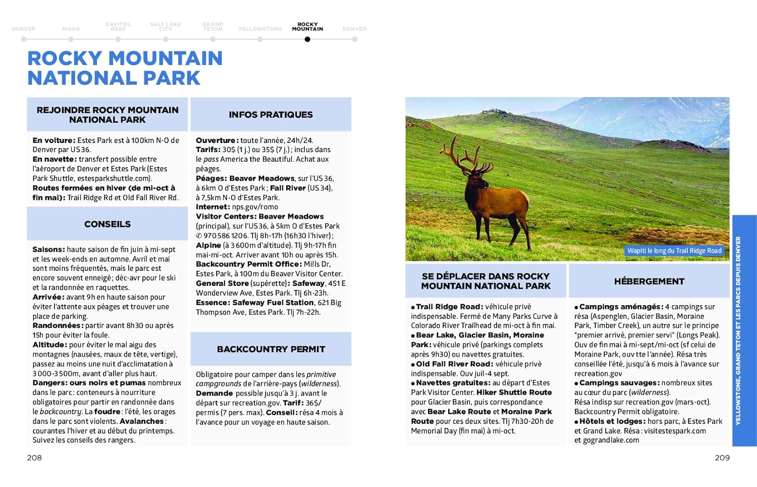 Le guide propose plusieurs circuits, notamment un itinéraire au départ de Denver qui englobe les parcs nationaux d’Arches, de Canyonlands et de Capitol Reef.