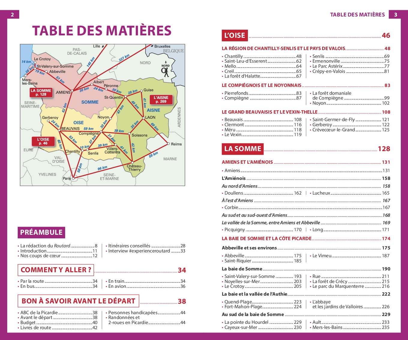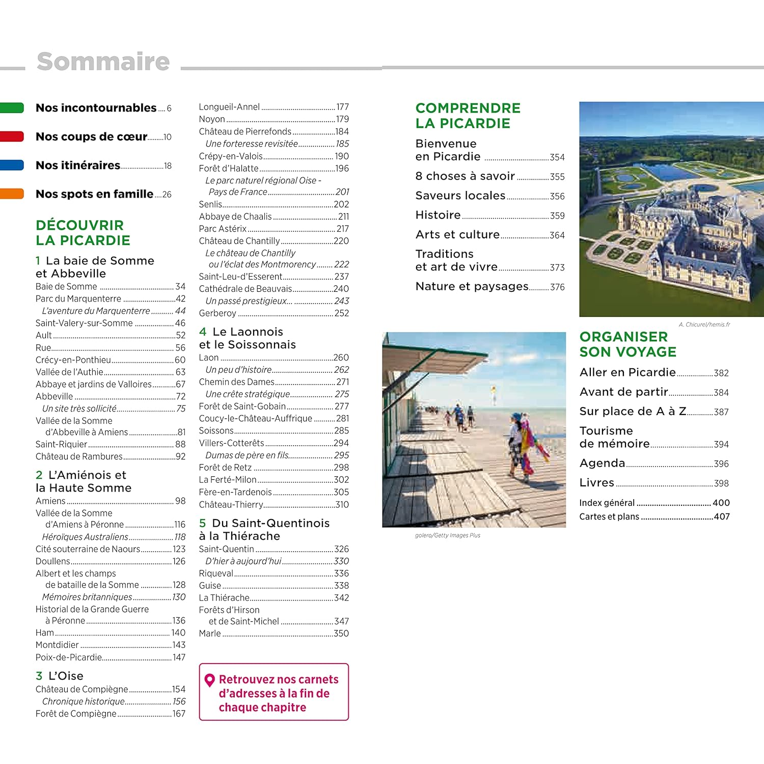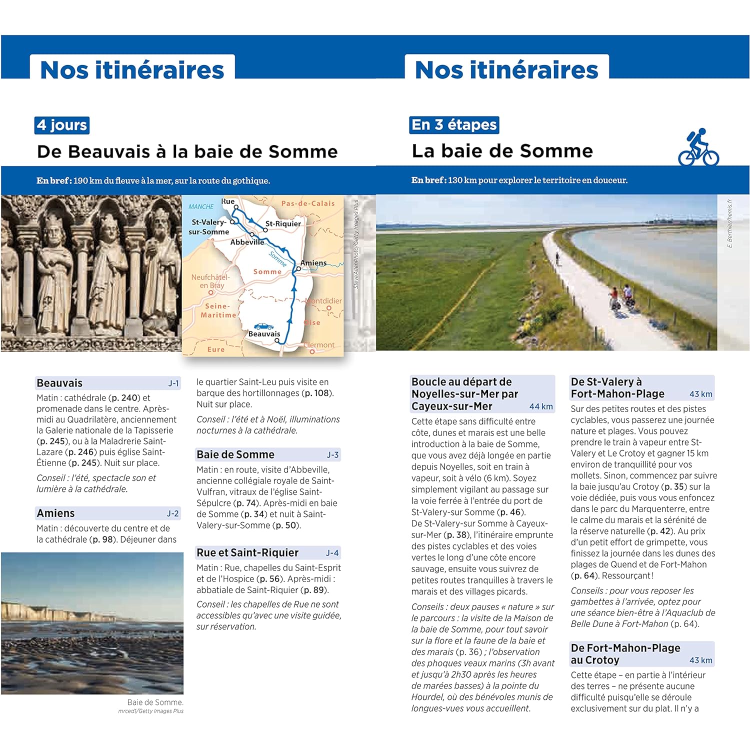 Le guide propose également plusieurs itinéraires, géographiques ou thématiques, assortis de renseignements et de conseils pour un séjour réussi. Les auteurs nous suggèrent des activités originales, comme une journée en famille au Parc Astérix ou une traversée à cheval de la Baie de Somme à marée basse, et des visites incontournables, comme la cathédrale de Beauvais ou le charmant village de Gerberoy.