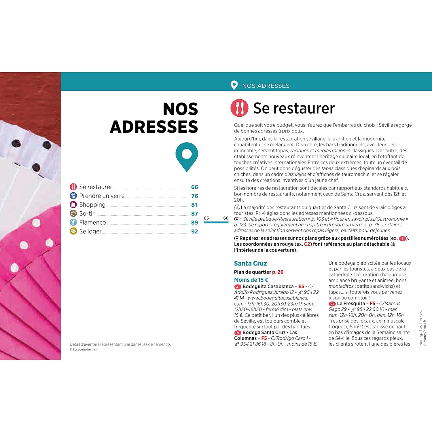 Les pages révèlent plus de 200 sites et adresses essentiels, des monuments historiques aux restaurants et boutiques, le tout localisé avec précision. Le guide propose des itinéraires soigneusement élaborés, des balades à travers la ville et même des échappées à une heure de Séville.
