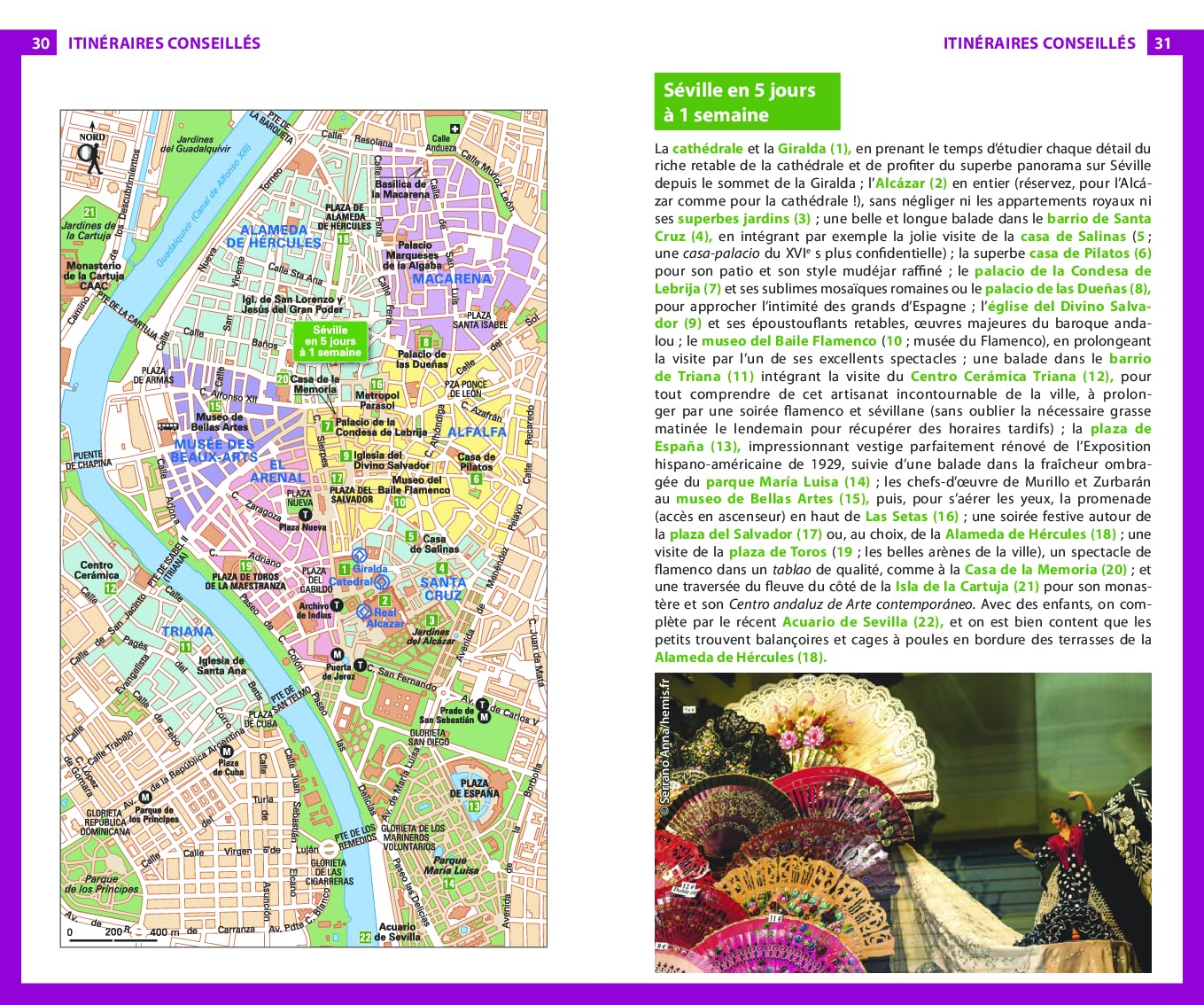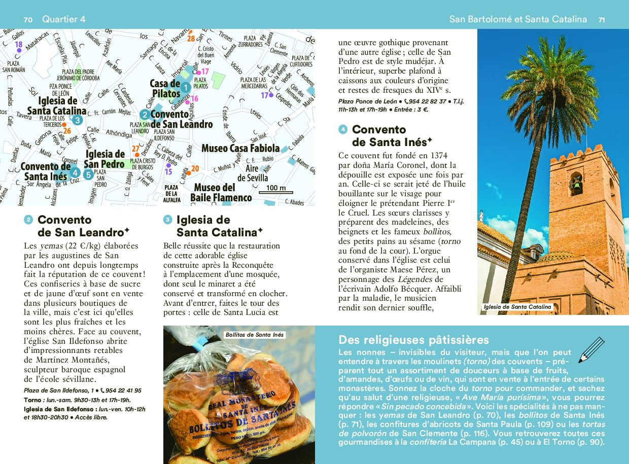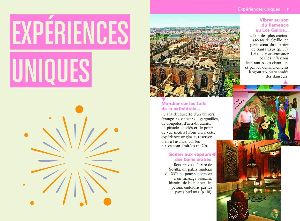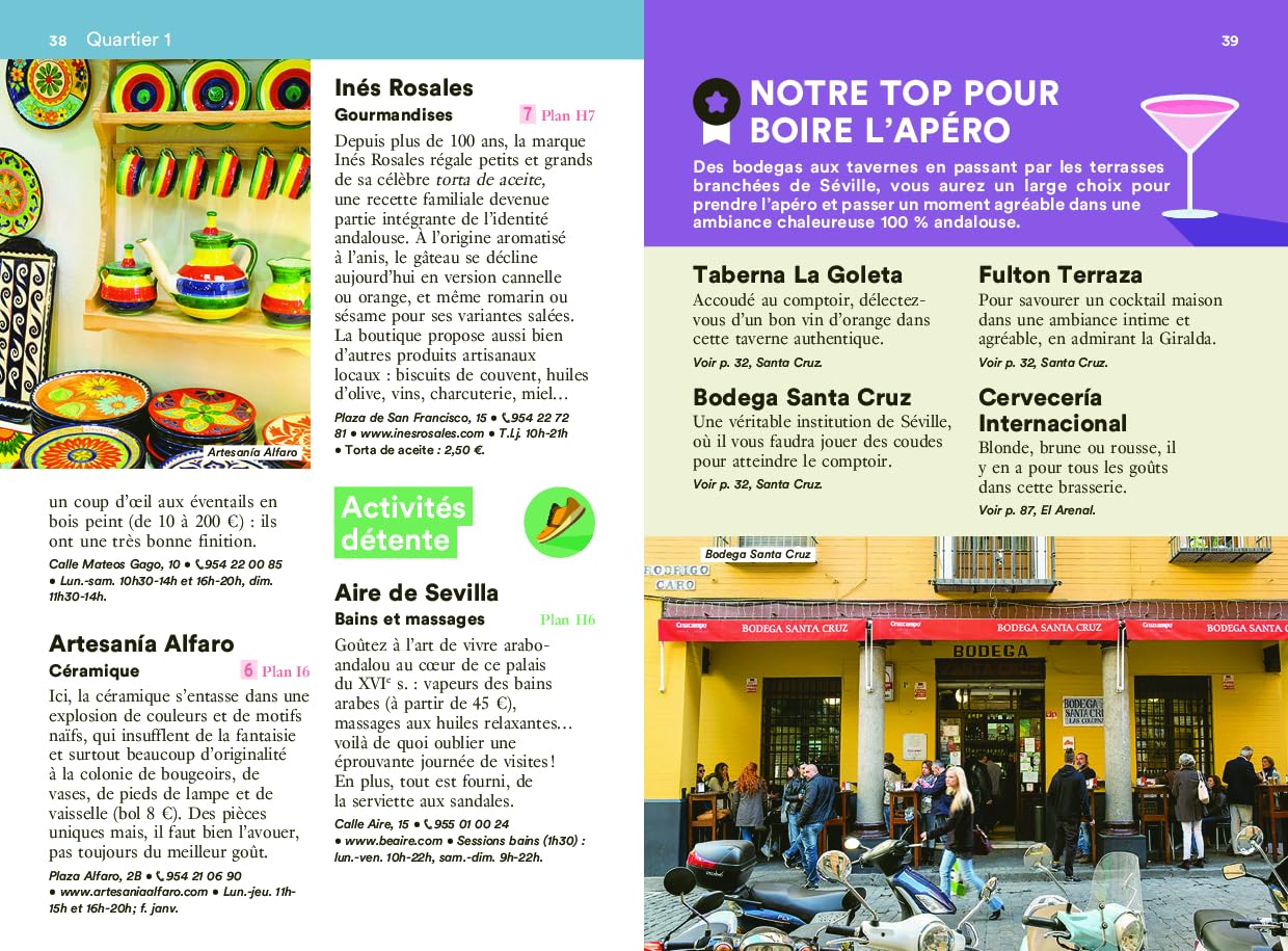Envie de sortir des sentiers battus ? Plongez-vous dans les doubles pages dédiées à la culture locale, notamment le quartier des artisans de Triana, lieu de naissance du flamenco.