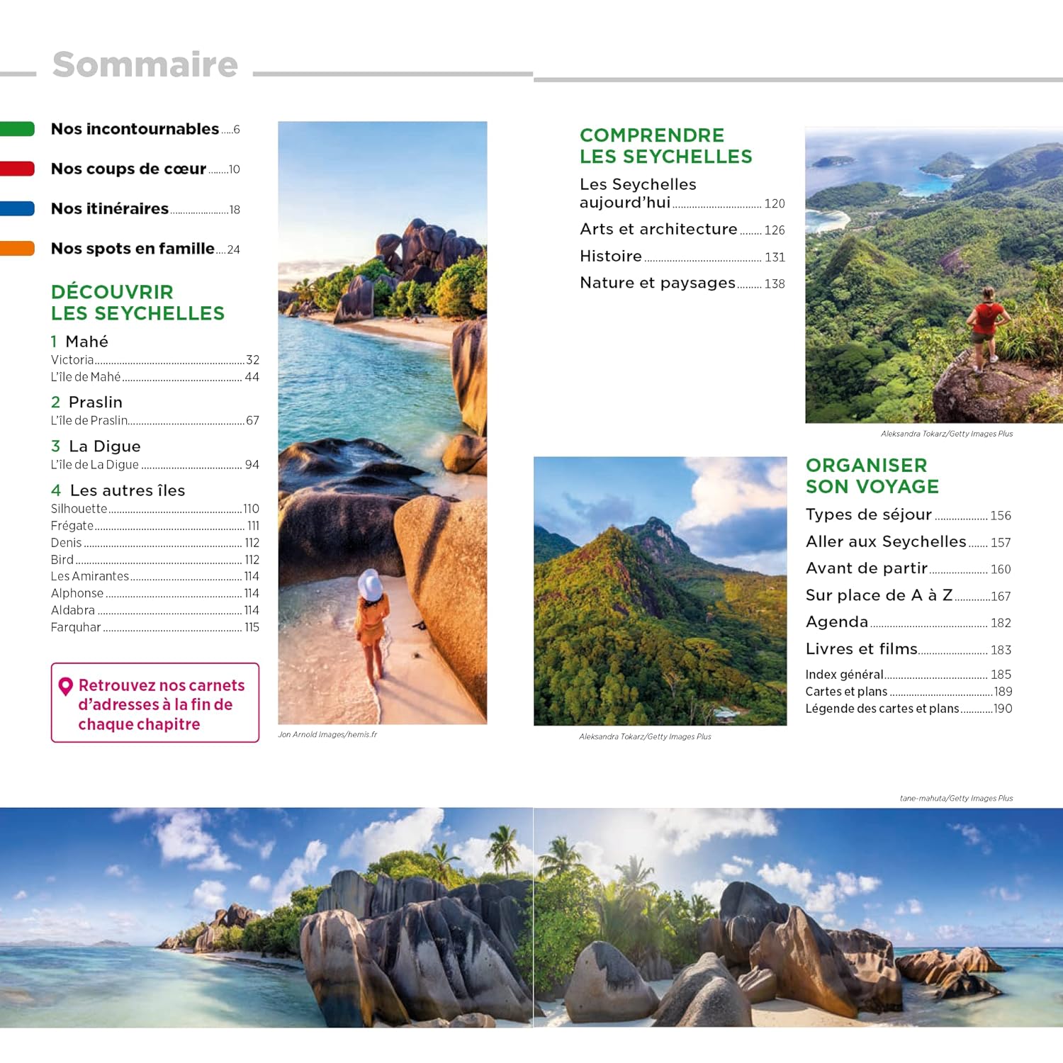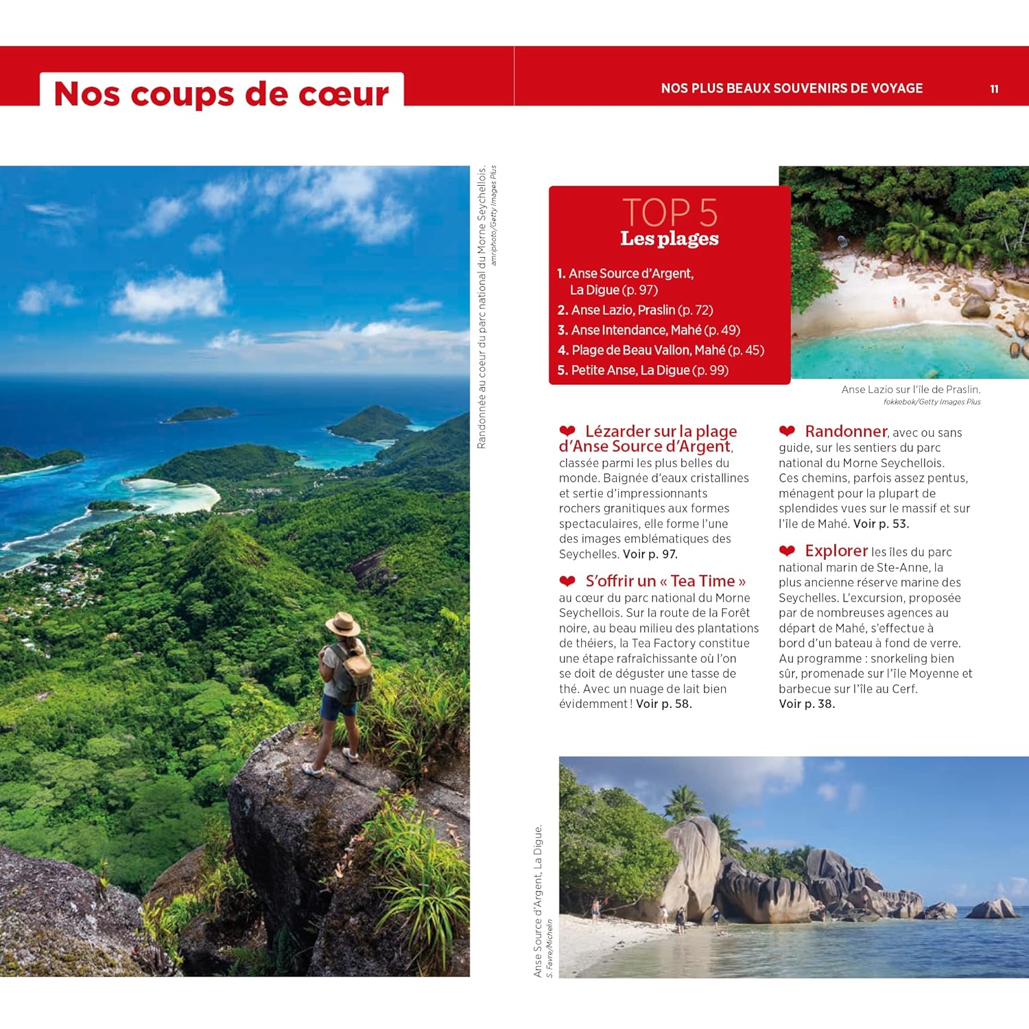 Vous y retrouverez des suggestions pour trouver les meilleures plages et participer à des activités en plein air, dont un chapitre dédié à la plongée et au snorkeling, activités pour lesquelles les Seychelles sont réputées.