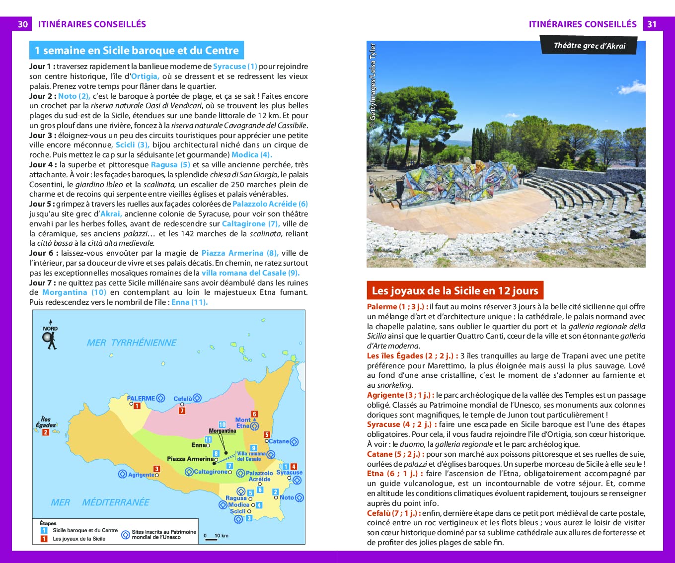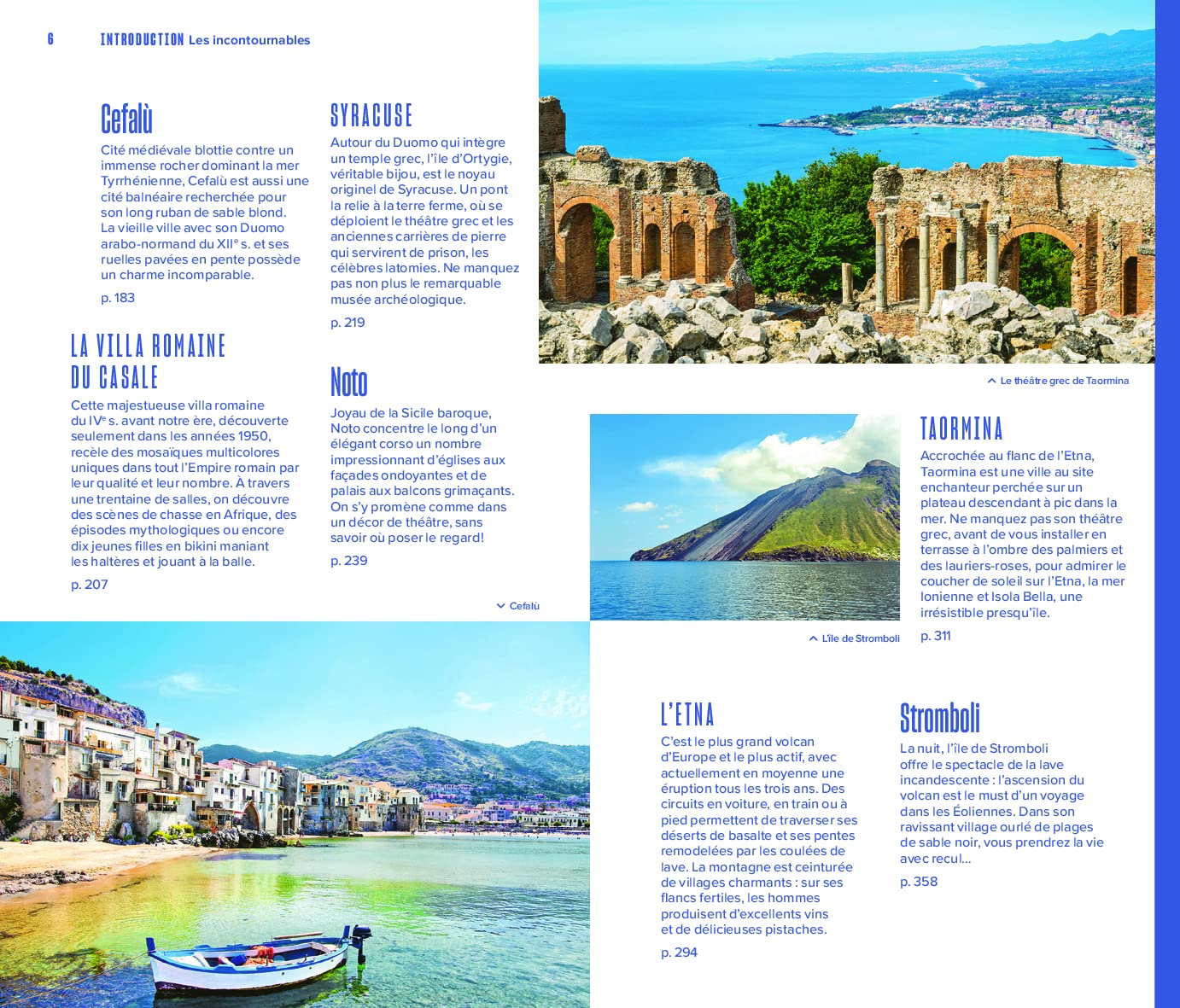 Un guide qui dévoile les attraits touristique de ce territoire méditerranéen. On y découvre les immanquables tels les temples antiques, les villes baroques, les réserves naturelles et les villages de pêcheurs, sans oublier le caractère volcanique du territoire, de l’Etna aux îles Éoliennes.