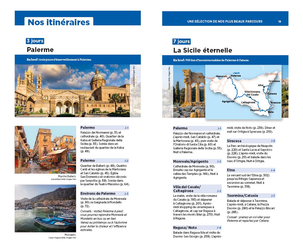 Un guide qui nous entraîne au cœur de la Sicile avec une approche simple et efficace. Les auteurs y présentent deux itinéraires majeurs : l’un partant de Palerme et couvrant l’ouest de l’île ; l’autre partant de Catane et explorant l’est de l’île, avec des étapes telles que l’Etna, Syracuse, Noto ou Ragusa.