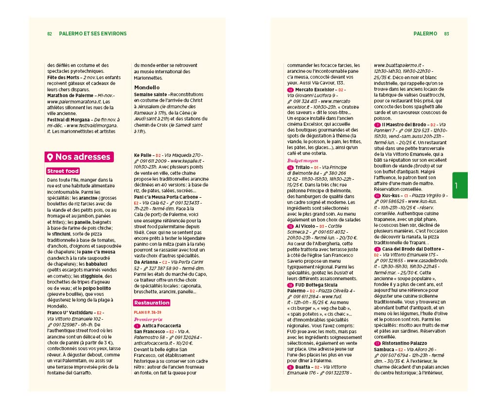 Les lieux incontournables comme Palerme, Trapani, Syracuse ou encore Taormine sont minutieusement décortiqués. Les auteurs partagent également leurs bons plans en matière d’hébergement et de restauration, avec une attention particulière accordée à la gastronomie locale.