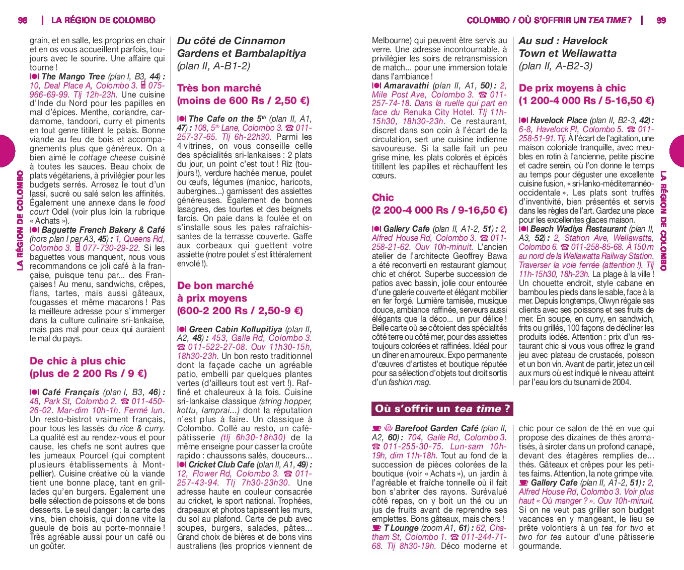 Envie de découvrir les spécialités sri-lankaises ? Ce guide renferme plus de 150 adresses où déguster des mets locaux, se détendre autour d’un verre, faire du shopping ou trouver un lieu de repos.