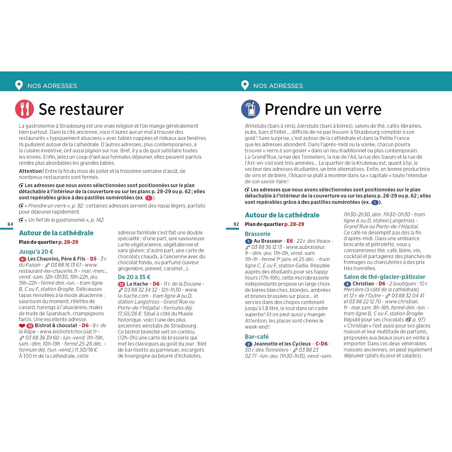 Les auteurs proposent une division de la ville par quartiers, avec une multitude de suggestions pour se restaurer, prendre un verre, se divertir ou faire du shopping. Un focus sur la gastronomie alsacienne et la bière est inclus, ainsi qu’un plan détachable pour faciliter votre périple.