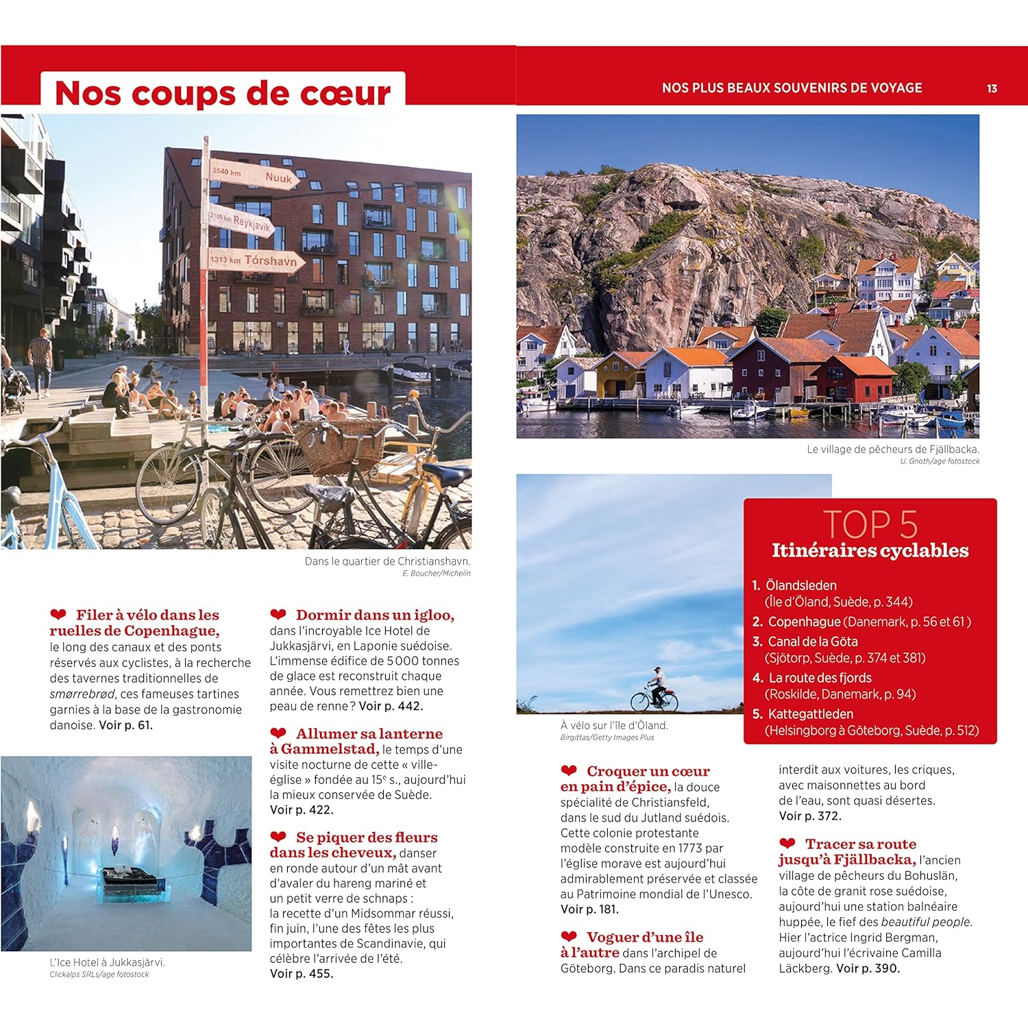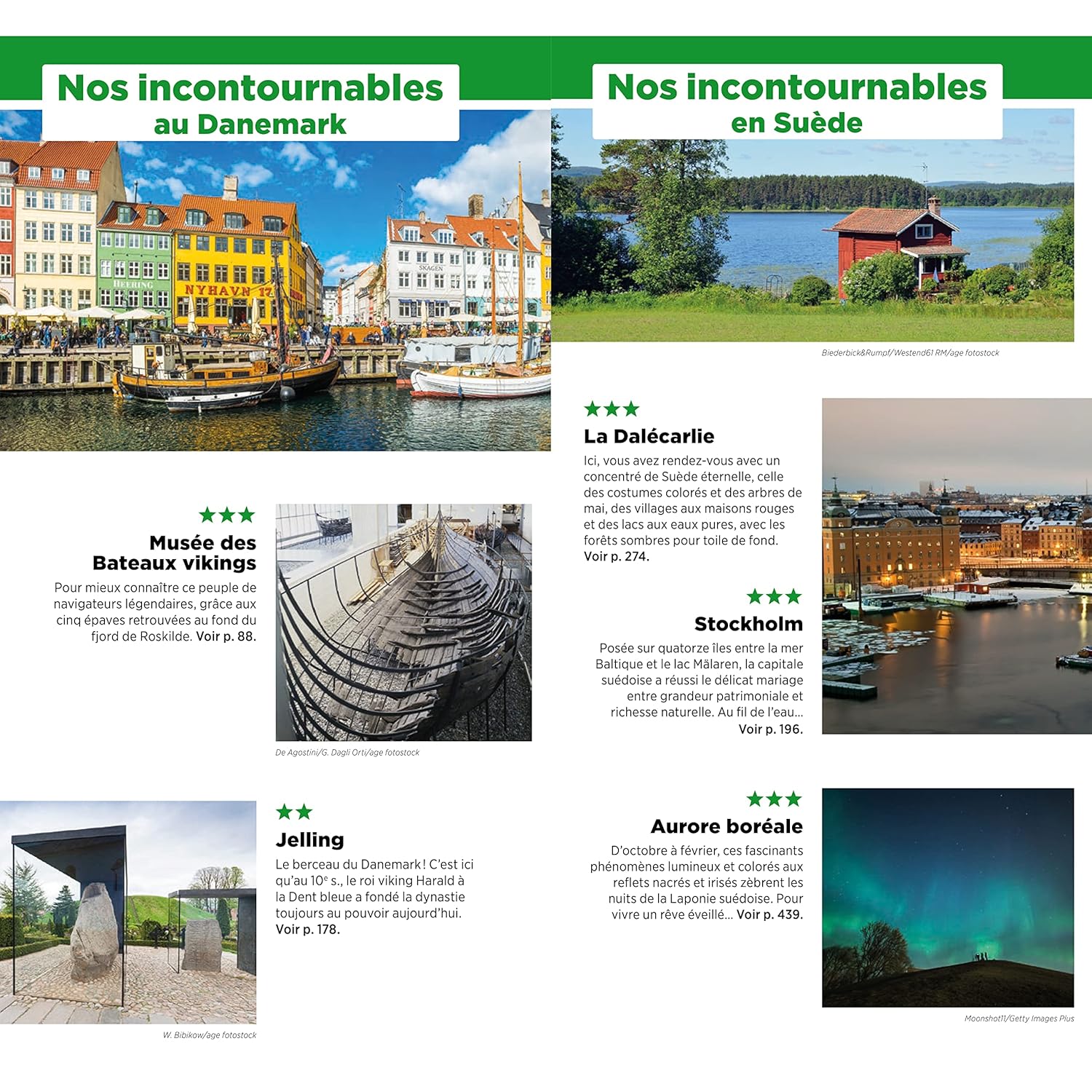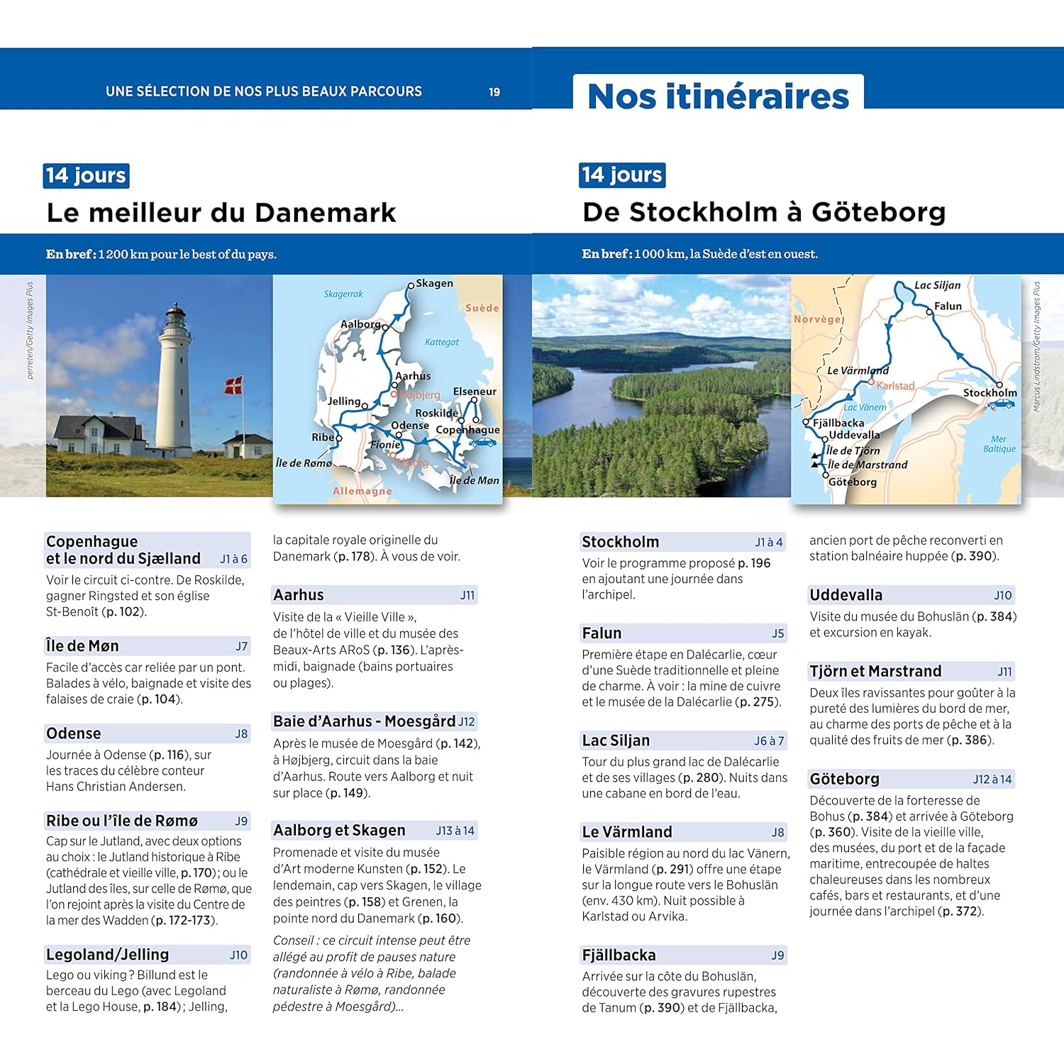 Des suggestions d’itinéraires, comme « le meilleur du Danemark en 14 jours » ou « Stockholm et la Dalécarlie en 8 jours », ainsi que de nombreux cartes et plans sont inclus pour planifier votre séjour sur-mesure.