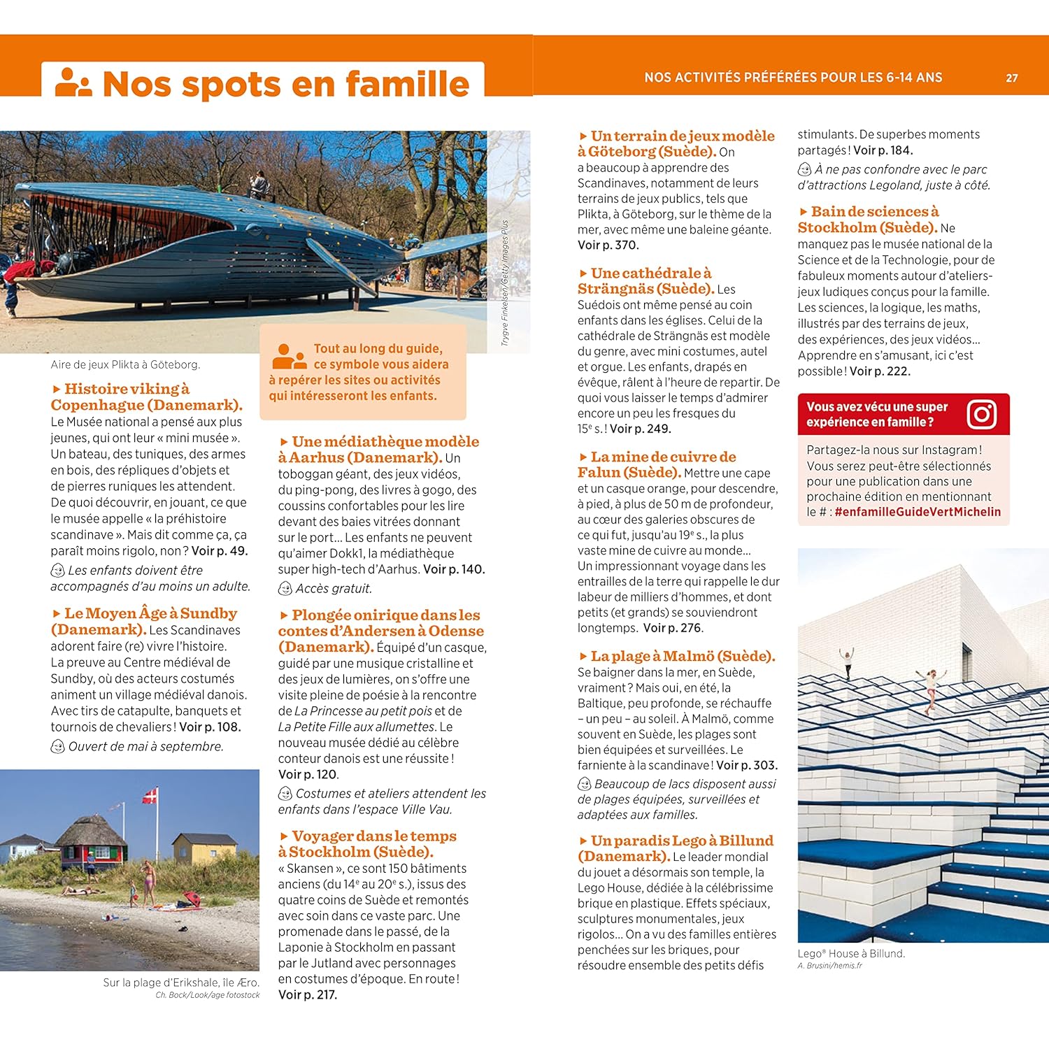 Vous y retrouverez des suggestions d’adresses pour tous les budgets, qu’il s’agisse de gastronomie, de shopping ou de logement. Mais aussi des activités originales pour les enfants, par exemple découvrir l’histoire viking à Copenhague ou visiter une maison Lego à Billund.
