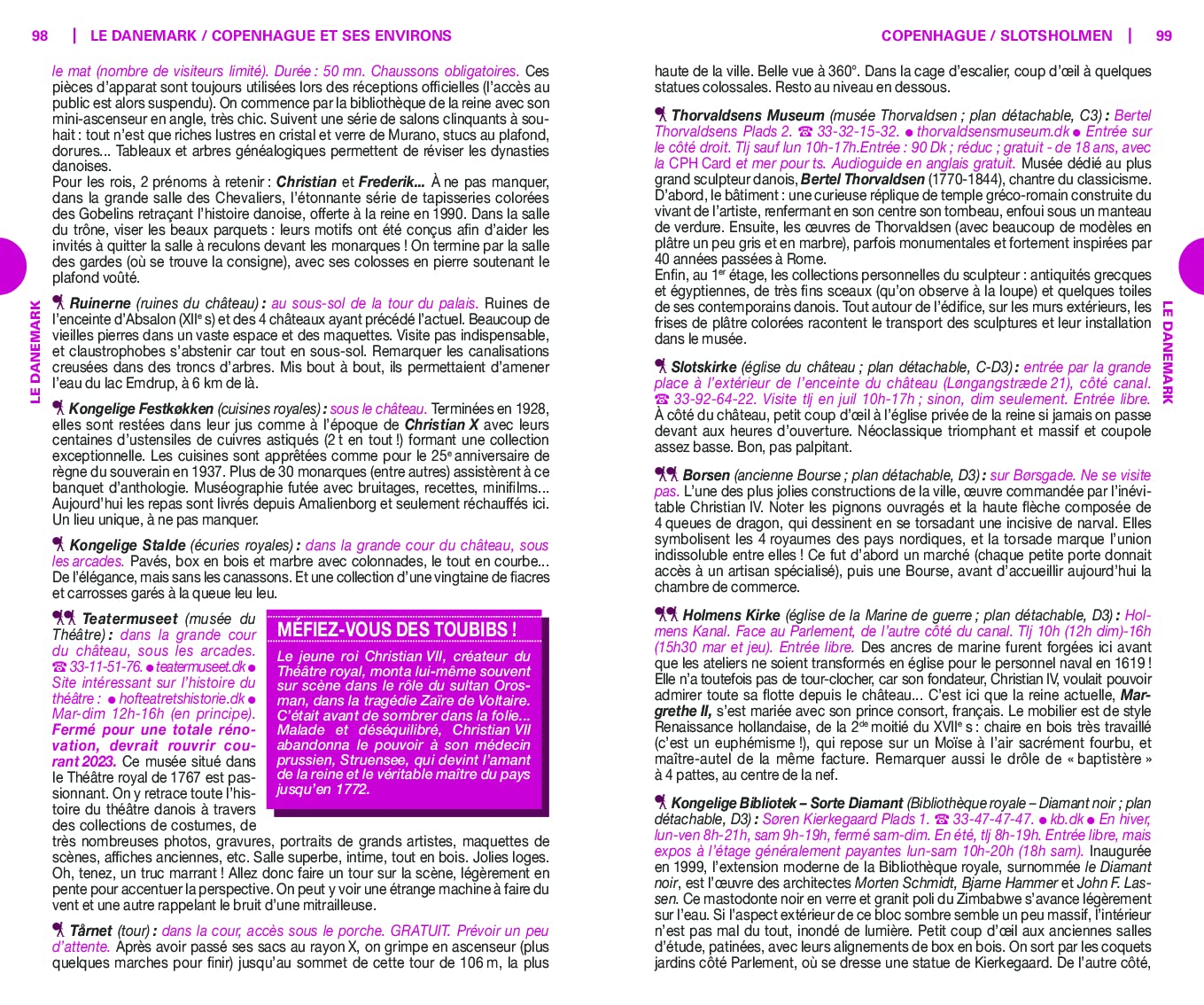 Un guide qui passe au crible les principaux attraits touristiques de ces deux pays nordiques. Les auteurs suggèrent des activités inoubliables à vivre seul, en famille ou entre amis, comme se perdre dans l’ambiance danoise des bars de Nyhavn ou découvrir les chefs-d’œuvre de Gauguin à la Ny Carlsberg Glyptotek de Copenhague.